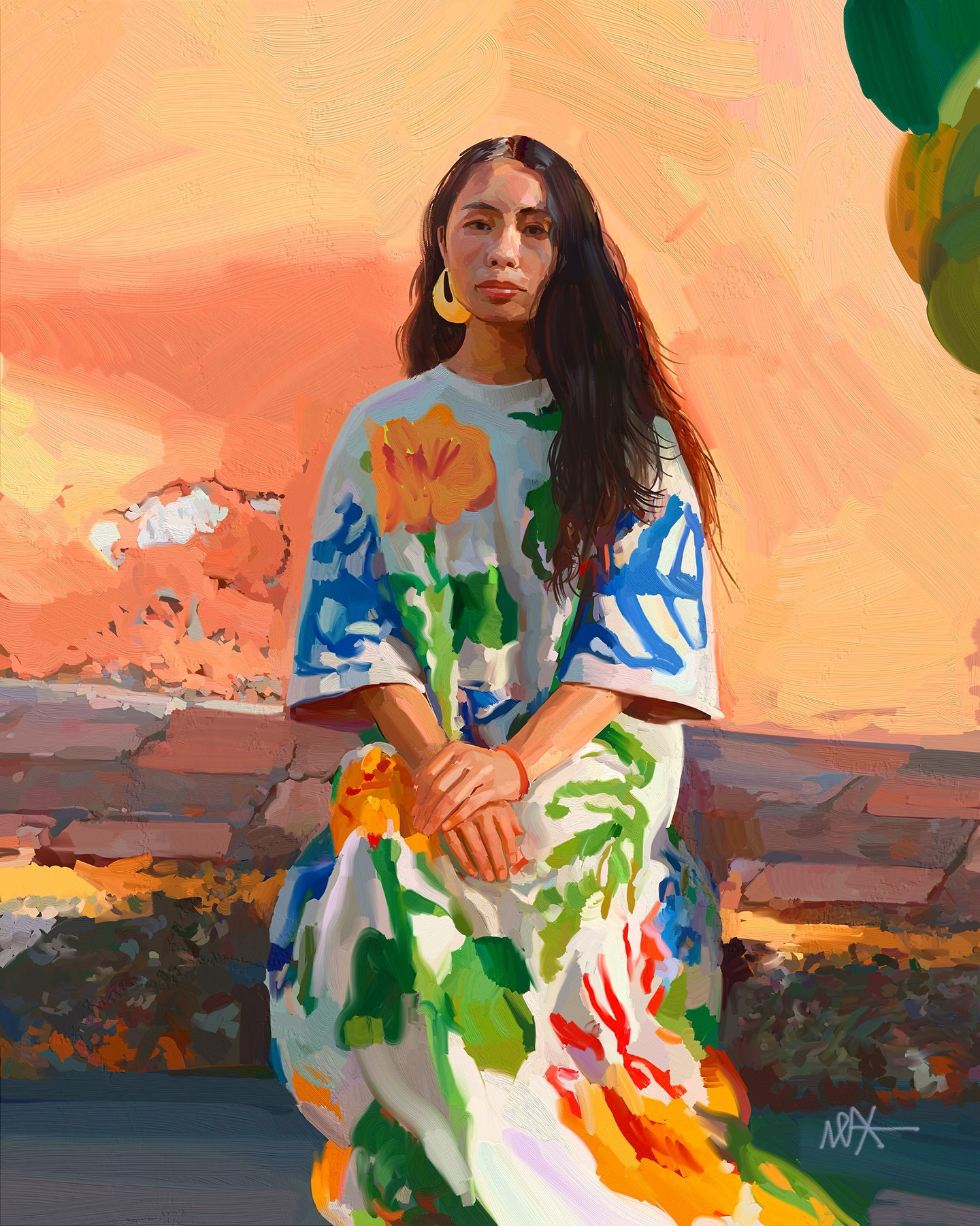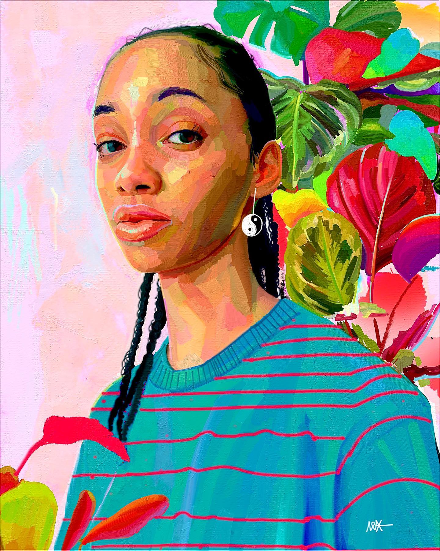 表现着令人印象深刻的色彩、环境和技法创作肖像画,