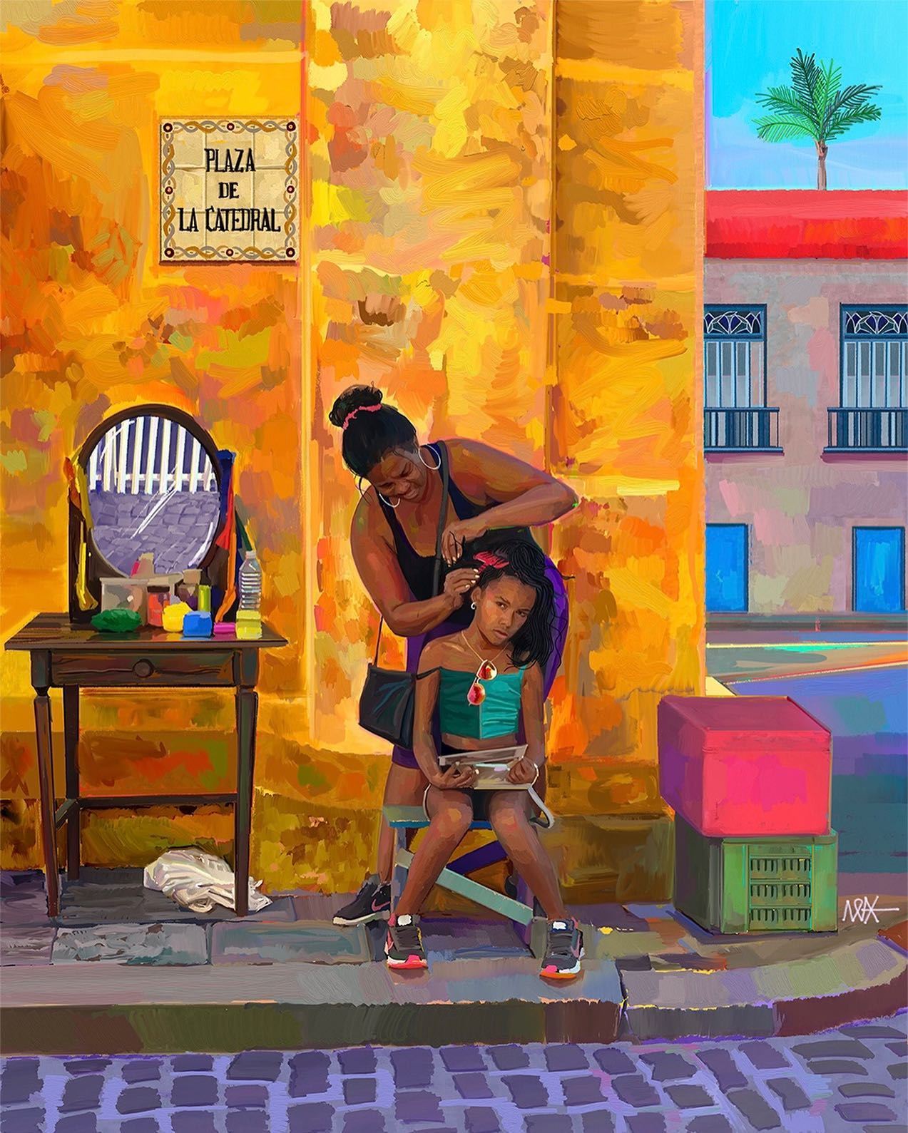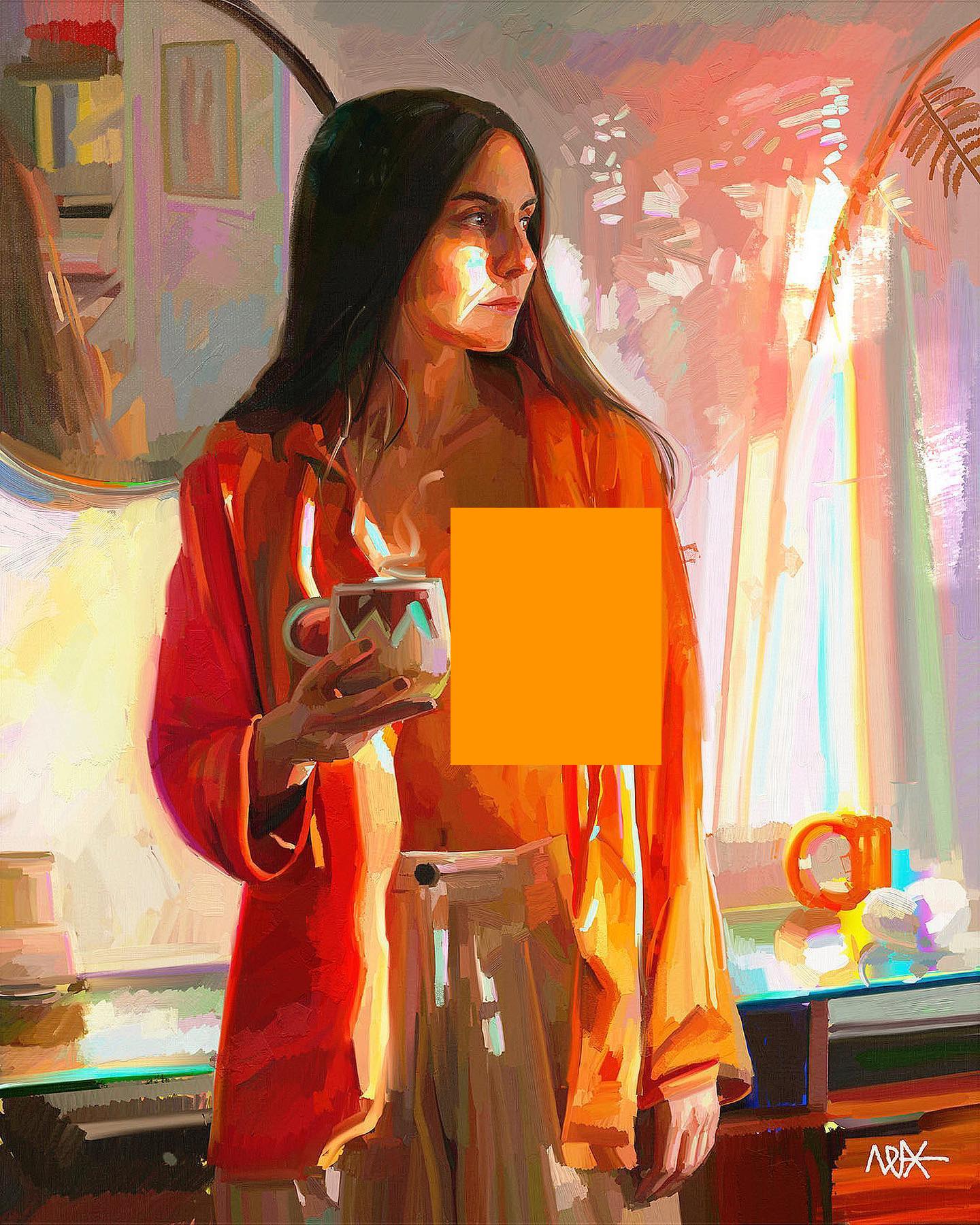 马科斯有着独特的绘画天赋,他的造型能力是毋庸置疑的,以故事场景为主题,他喜欢记录生活中的故事,他画的似乎就是一般的油画画像,接受着各地粉丝的托稿,
