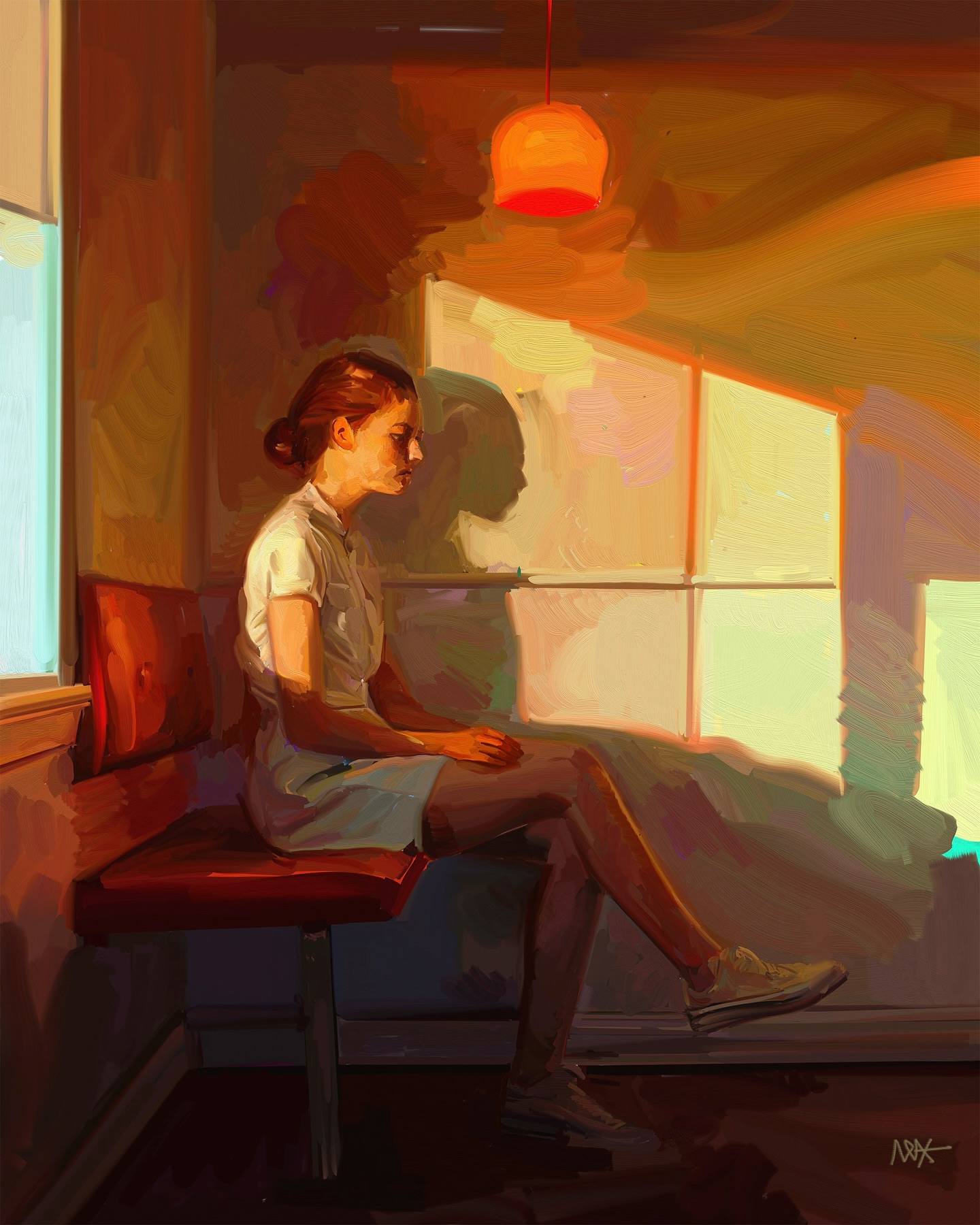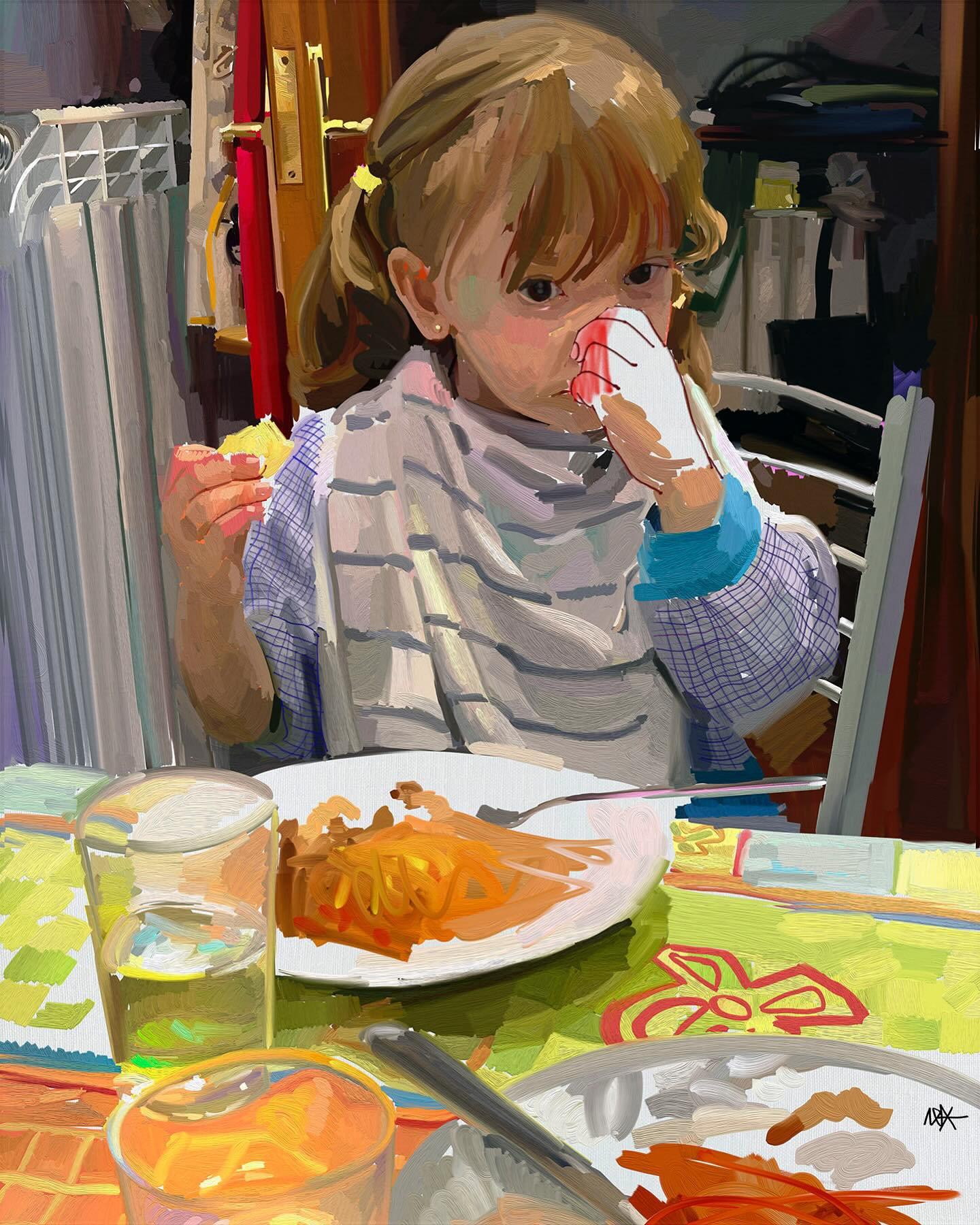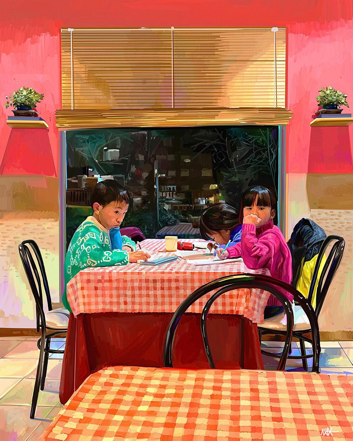 只不过是在大学里也逐渐接触了数字数位板,甚至可以通过电脑手绘的方式开始创作,初期时马科斯常常作为思考的工具,就像一个笔记本一样,时间长了才发现,原来用板绘来模仿油画也是非常的有意思的,