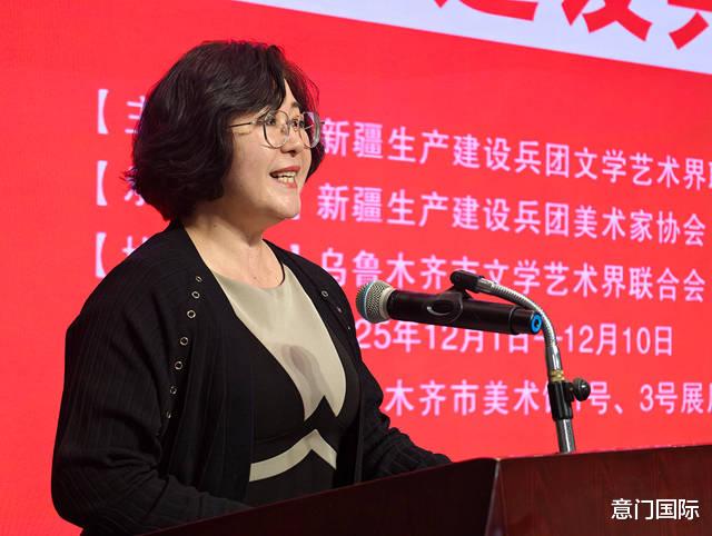 玛尔哈巴·哈斯木在致辞中表示,本次展览既是兵地文艺界从“阶段性携手”迈向“常态化深耕”的鲜活见证,也是“兵地一家亲”的深厚情谊与文化融合的生动实践。