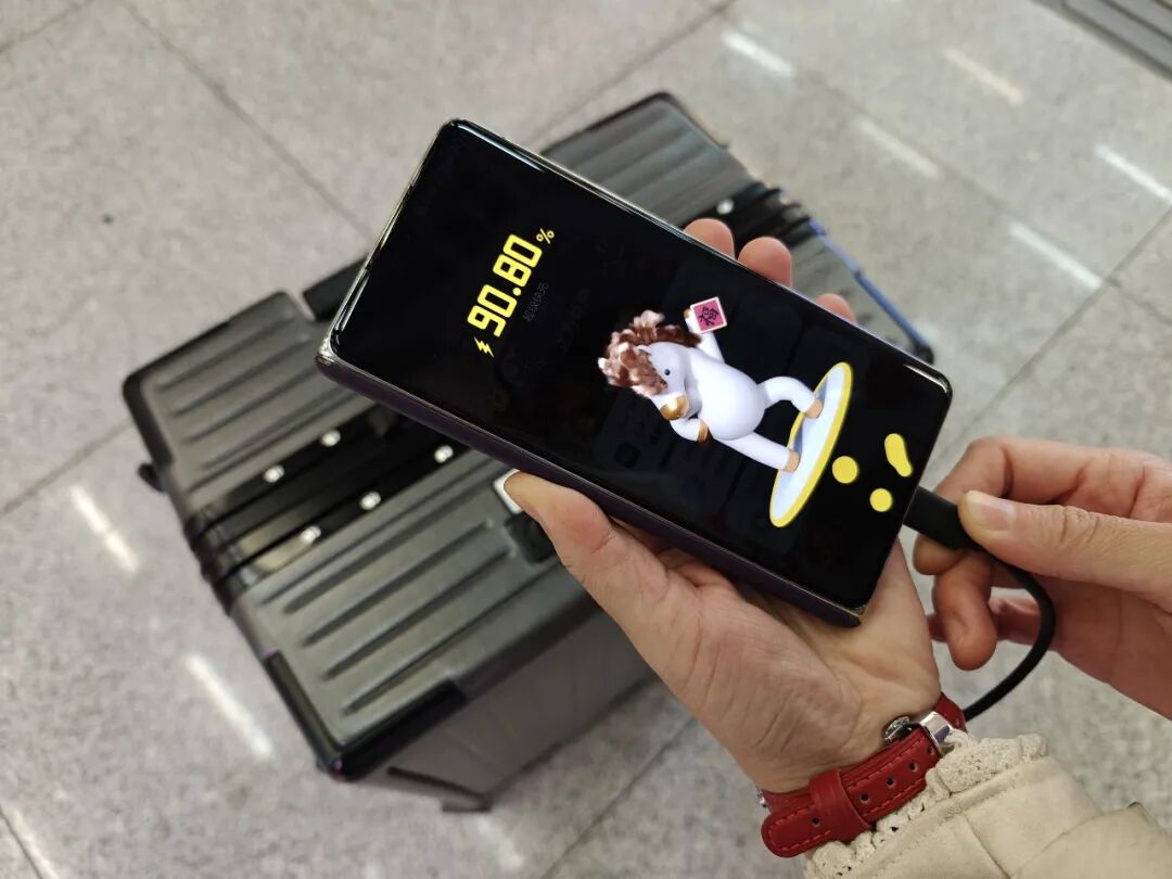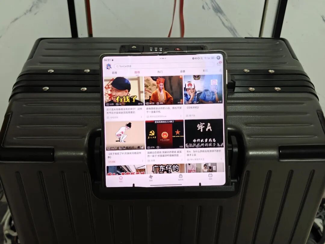 另外它把手的位置还可以打开,瞬间秒变隐藏手机支架,让你在候机或者等高铁的时候可以追剧打发时间,真是商务旅行神器。