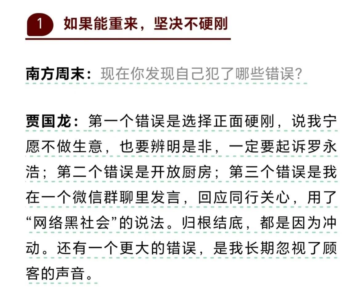 看得出,这次风波对贾国龙的冲击是很大的,他终于发现了,现在的网友根本不吃他的老一套。