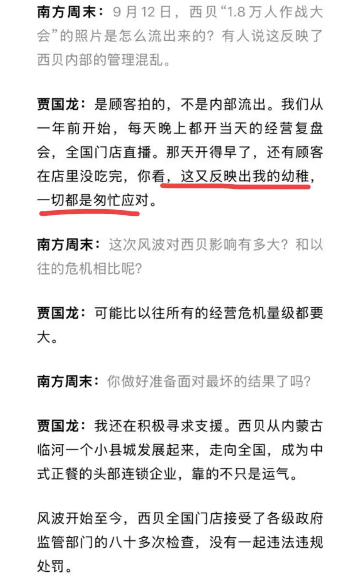 没有给自己找理由,没有甩锅,贾国龙的自我剖析看上去还是很坦诚的。