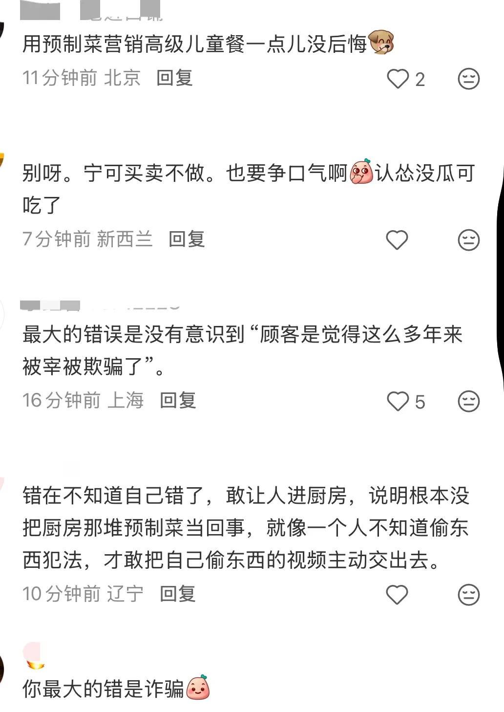 “他最后悔的是被消费者发现了。敢让人进厨房,说明他根本就没把厨房那堆预制菜当回事。”
