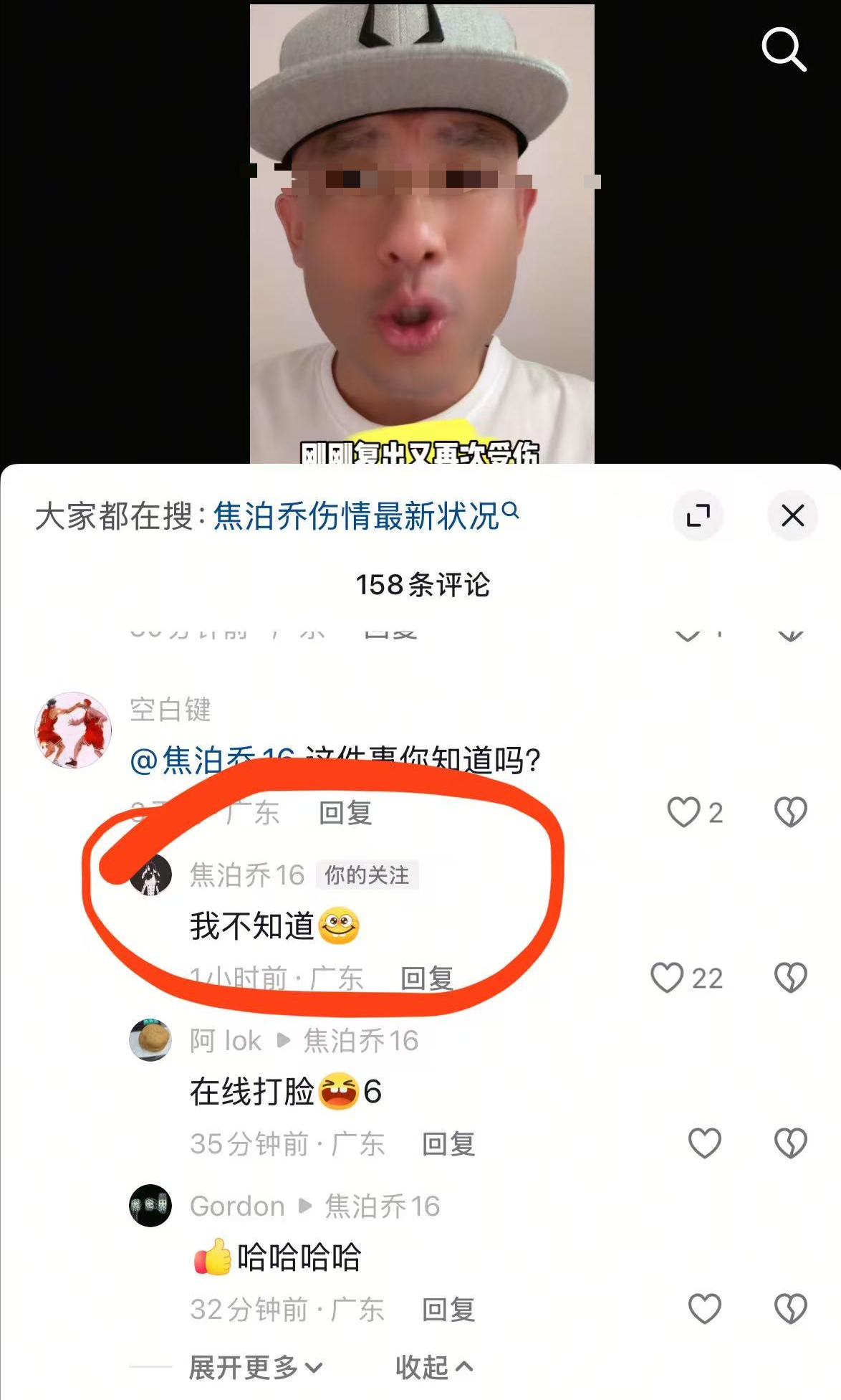 近日,某位辽宁自媒体在其社交媒体账号上,故意造谣焦泊乔又再次受伤,焦泊乔本人也在其评论区作出了回应,焦泊乔在评论区回复了“我不知道+一个笑脸的表情”。