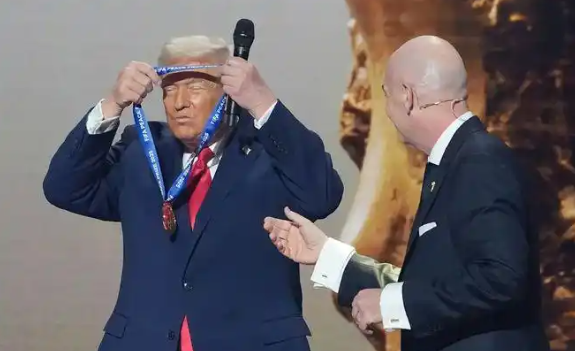 特朗普终于拿到了心心念念的“和平奖”,却是国际足联发的,真是戏剧性拉满。当国际足联主席因凡蒂诺把首届“和平奖”递到特朗普手上时,现场突然响起《YMCA》的旋律——这正是特朗普去年竞选集会的“御用BGM”,特朗普在竞选中击败哈里斯当选美国总统。因凡蒂诺用心了。