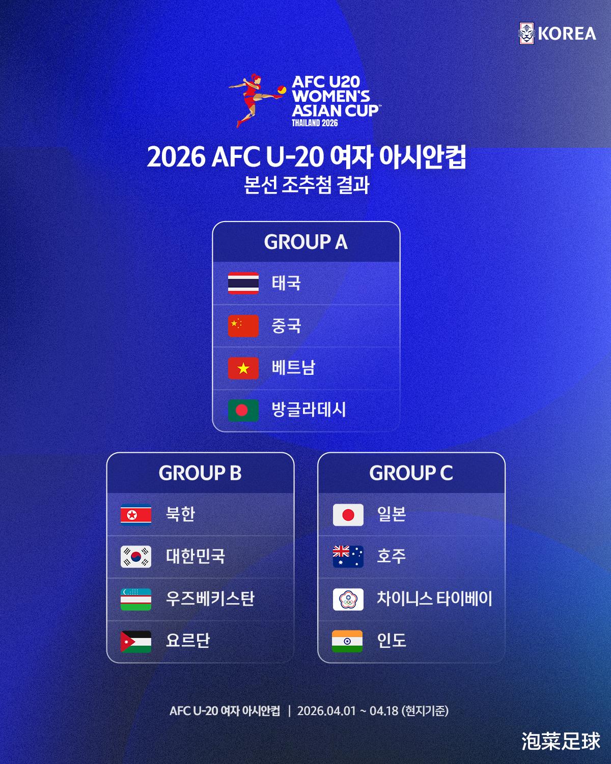 本届泰国U20亚洲杯,韩国与朝鲜、乌兹别克斯坦、约旦同分B组,由于两年一届的U20女足亚洲杯赛此前为8队参赛,但从本届起扩军至12队,12支球队分为3个小组,每组前两名及两个成绩最好的小组第三名晋级八强淘汰赛。因此韩国只有取得前四,才可以获得世界杯入场券。韩国队历史上曾在2004年和2013年两次夺得U20女足亚洲杯冠军,上届获得第四名。因此对于韩国女足来说,这次的任务考验还是很严峻的,毕竟在亚洲想要拿到前四,必须挤掉中、日、澳、朝其中一支,因此对于韩国女足来说,小组赛和朝鲜的比赛是一场绝对不能输的硬仗。