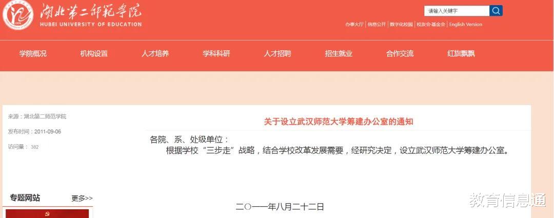 学校更名“武汉师范大学”的谋划已经很久了,早在2011年8月22日,就官宣“设立武汉师范大学筹建办公室”。在2021年召开的中共湖北第二师范学院第二次代表大会上,也提出了“到建校100周年至2035年,学校实现更名“武汉师范大学”目标”。