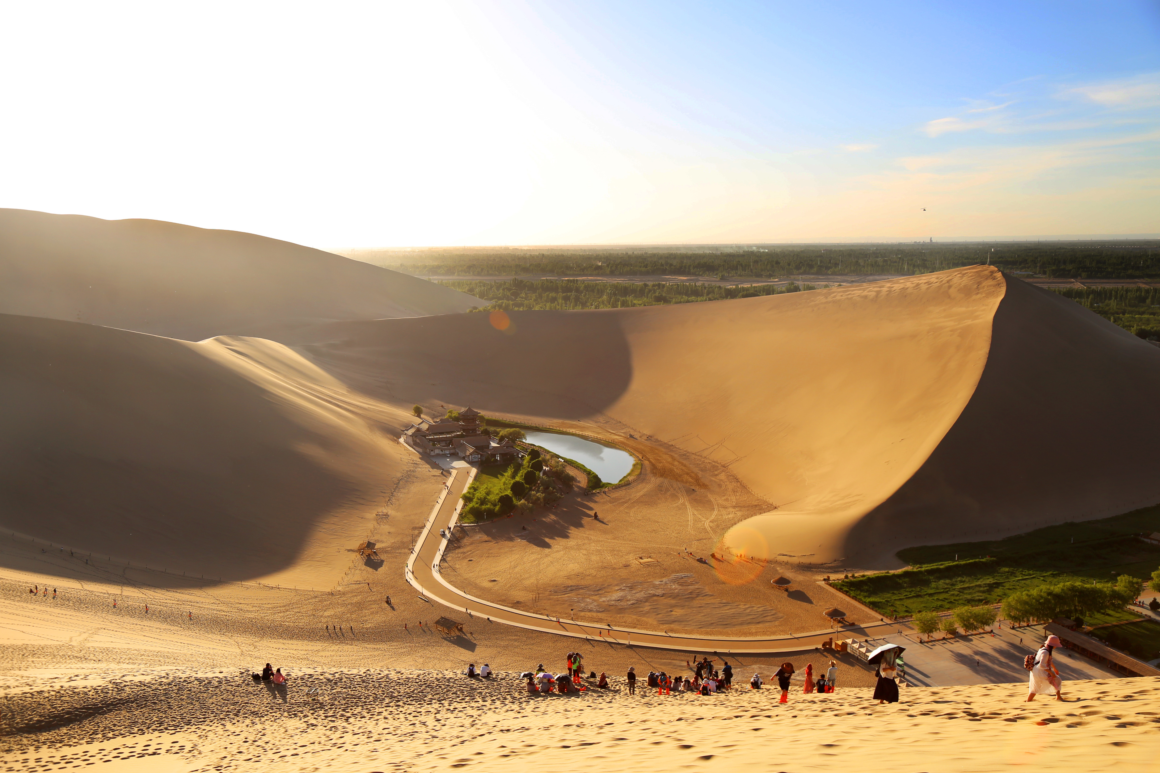 晚风起时,沙鸣如磬。我想起樊锦诗院长的感慨:“莫高窟是丝绸之路上多元文明荟萃的宝库。”这里不仅有大乘佛教的经变画,还有祆教的火焰纹、希腊的莨苕叶纹;飞天的手印带着印度风情,藻井的云气纹又见中原笔意。这种包容性,或许正是中华文明绵延不绝的密码。就像眼前这月牙泉,虽被沙山环抱,却千年不涸,以其清澈映照着天地轮转。