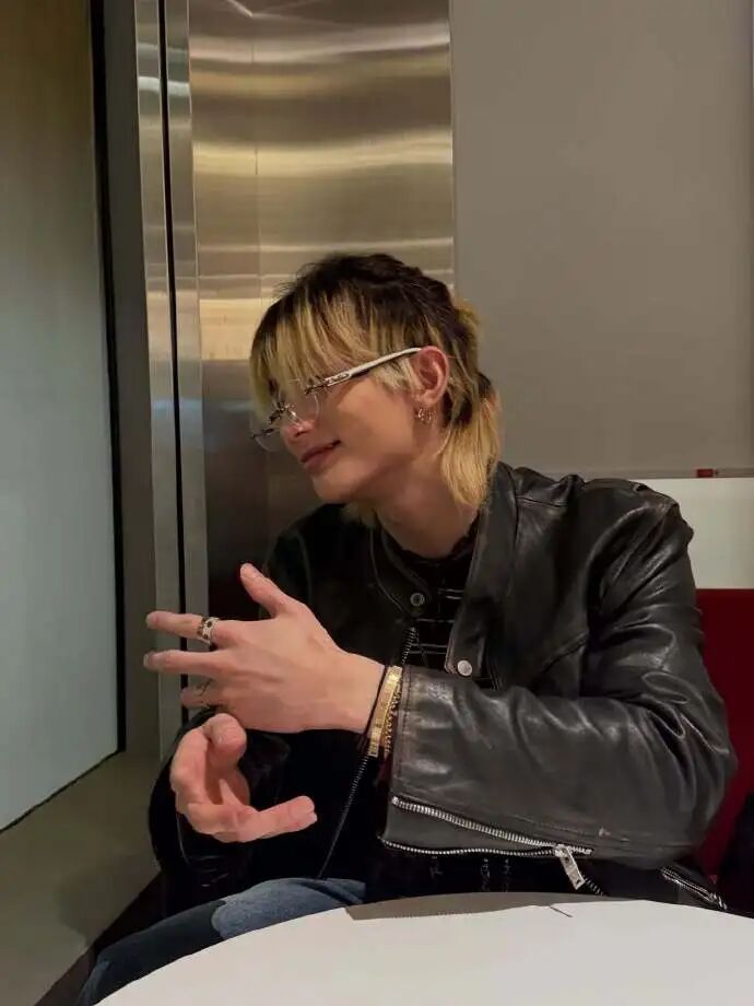 Givenchy 的服饰从不是 “框住风格的模板”:松垮 T 恤接住他的日常松弛,哑光皮衣衬出他的利落酷感,带细节设计的单品又能裹住他的复古调 —— 不是他 “穿成 Givenchy 的样子”,是品牌的多元风格,刚好适配他的不同状态。而 Cartier 的珠宝是 “细节里的精致”:细链项链搭背心时,吊坠刚好落在锁骨线,是随性里的细腻;手链藏在皮衣袖口,冷光蹭着皮质哑光,是酷感里的温柔;日常自拍时,手链搭在手机旁,是松弛里的不经意质感 —— 这些不是 “刻意搭配”,是品牌的低调,刚好接住了他的不刻意。
