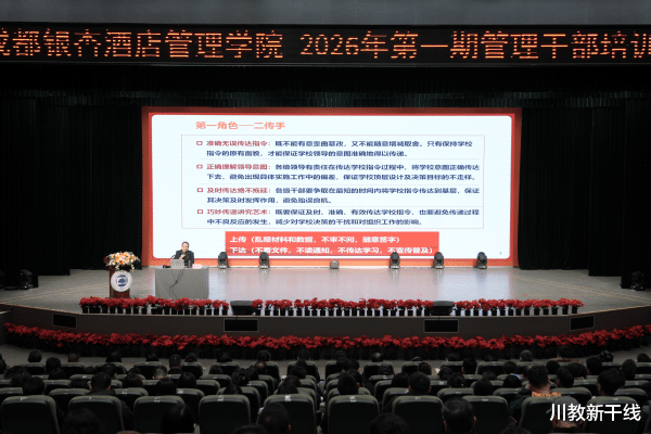 为进一步提升管理干部队伍的综合素质和履职能力,强化管理干部的责任担当,推动学校高质量发展,1月22日,成都银杏酒店管理学院举行2026年第一期管理干部培训。全体校领导、中层干部以及科级干部参加培训。副校长袁一田教授主持培训。