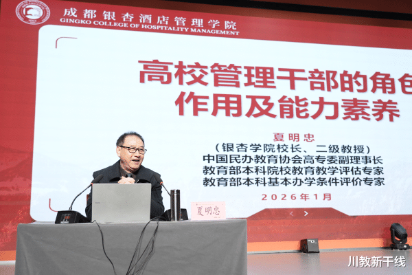 会上,成都银杏酒店管理学院校长、二级教授夏明忠作题为《高校管理干部的角色作用及能力素养》的专题报告。报告紧扣高校办学实际、聚焦管理工作痛点难点,围绕管理干部的角色定位、自我修炼、必备能力、易犯错误四大维度,进行了系统全面、深入浅出的阐释与讲解。在干部角色分析环节,明确界定了高校管理干部作为“二传手”“缓冲带”“凝聚者”的三重核心定位,着重强调,全体管理干部要立足本职岗位、精准找准自身坐标,主动扛起责任、积极担当作为,切实发挥好连接学校与师生、统筹协调各项工作的桥梁纽带作用。