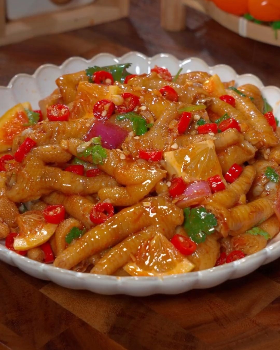 制作方法:先起锅烧水,把处理干净的鸡爪冷水下锅并放入葱姜,料酒和食用盐。接着开大火把水煮开,把鸡爪煮熟再捞出并放到凉水中浸泡十分钟。时间到了之后捞出,沥干水之后装进大碗中,再放入蒜末,洋葱,小米辣和香菜,还有柠檬,搅拌均匀再进行调味,放入食用盐和蚝油,生抽,白糖,少量陈醋,搅拌均匀即可。这道柠檬鸡爪,是一道开胃菜,品尝过后就不会没有食欲了。