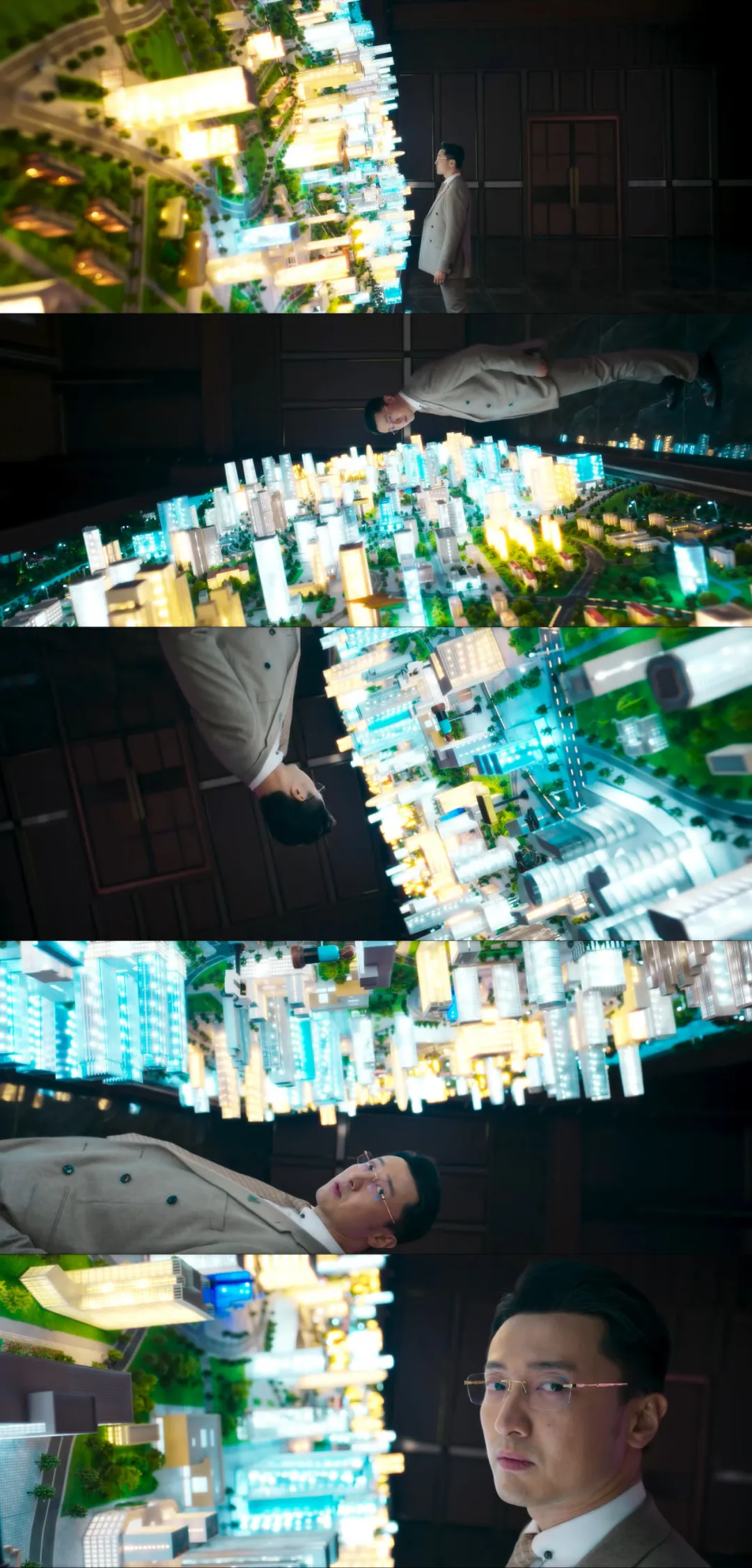 最后,天毅还特意设计了一个刘天也站在地图前查看时的360度旋转镜头,综合了平视、仰视、俯视等多种关系。