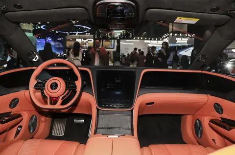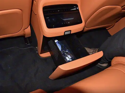 内饰的升级聚焦于豪华氛围与个性化体验的提升,核心亮点是全新“旭光橙”内饰配色的引入。这种温暖而富有活力的橙色与深棕皮革形成撞色搭配,覆盖座椅、门板及中控台等区域,搭配金属饰条与翻毛皮材质点缀,营造出兼具运动与奢华的座舱氛围。中控台配备17.6英寸悬浮式中控屏与12.3英寸全液晶仪表盘,车机系统搭载仰望OS 2.0智能互联系统,支持多任务并行、跨设备互联与语音交互。座椅采用Nappa真皮包裹,内部填充高回弹记忆棉,主驾座椅支持16向电动调节与通风、加热、按摩功能,后排独立座椅同样配备丰富的舒适性配置,配合全景天窗与星空氛围灯,进一步强化了豪华体验。