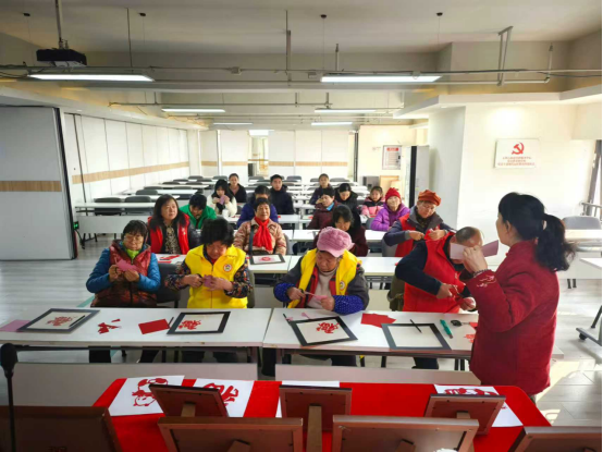 本场活动依旧邀请资深剪纸艺人黄小平老师现场授课。课堂上,黄老师结合新年节庆主题,围绕生肖、春联、吉祥纹样等元素,讲解剪纸构图的进阶技巧与创意构思方法。针对居民在首场活动中遇到的图案镂空、细节裁剪等难题,黄老师进行了手把手示范,耐心拆解操作步骤,细致解答大家的疑问。居民们或凝神倾听,或动手尝试,课堂上学习氛围浓厚又不失温情。实操环节,居民们俨然已是“剪纸能手”,纷纷拿出红纸与剪刀投入创作。大家紧扣新年主题,有的裁剪憨态可掬的生肖纹样,有的雕琢寓意吉祥的新春福字,还有的邻里合作,将社区的温馨场景与新年元素巧妙结合,创作出独具创意的剪纸作品。创作过程中,大家相互分享经验、互帮互助,不时传来欢声笑语,一张张红纸在指尖流转,变成了一幅幅承载着年味与心意的精美作品。活动尾声,大家纷纷展示自己的得意之作,互相品鉴、拍照留念。不少居民表示,相较于第一场活动,自己的剪纸技艺有了明显进步,不仅收获了创作的乐趣,更感受到了传统文化的魅力。“第一场学会了基础手法,这场又解锁了新技巧,剪出来的新年福字特别精致,回家要贴在窗户上!”一位居民捧着作品开心地说道。