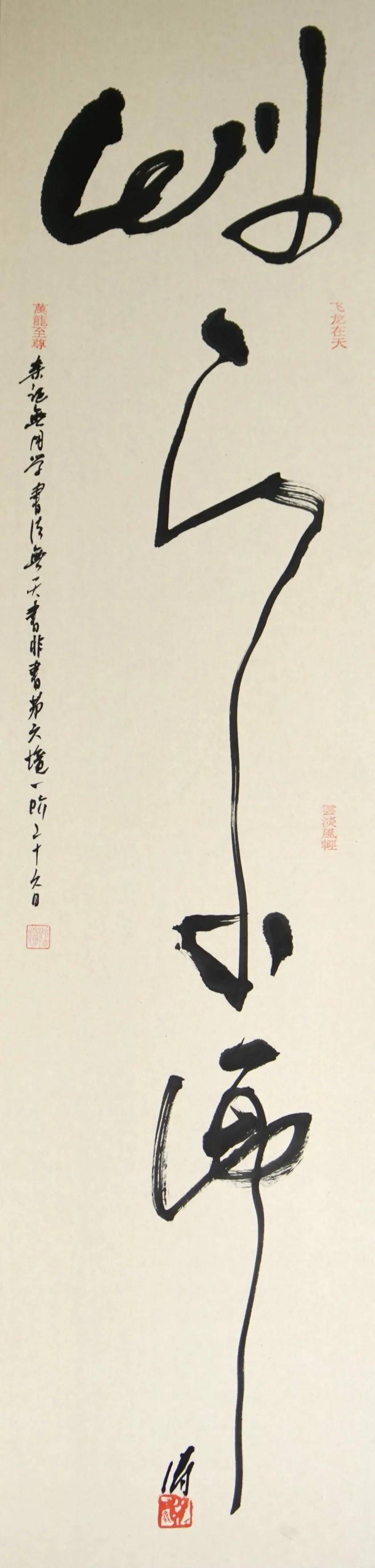 心起于当下止于当下,破除以往不盼未来,以炁入笔,以线练炁,笔随炁走,意随线行,不求字意仅取其势取其形,非正常正规书法之态,希书家不吝赐教,希儒释道之同修多点拨之!
