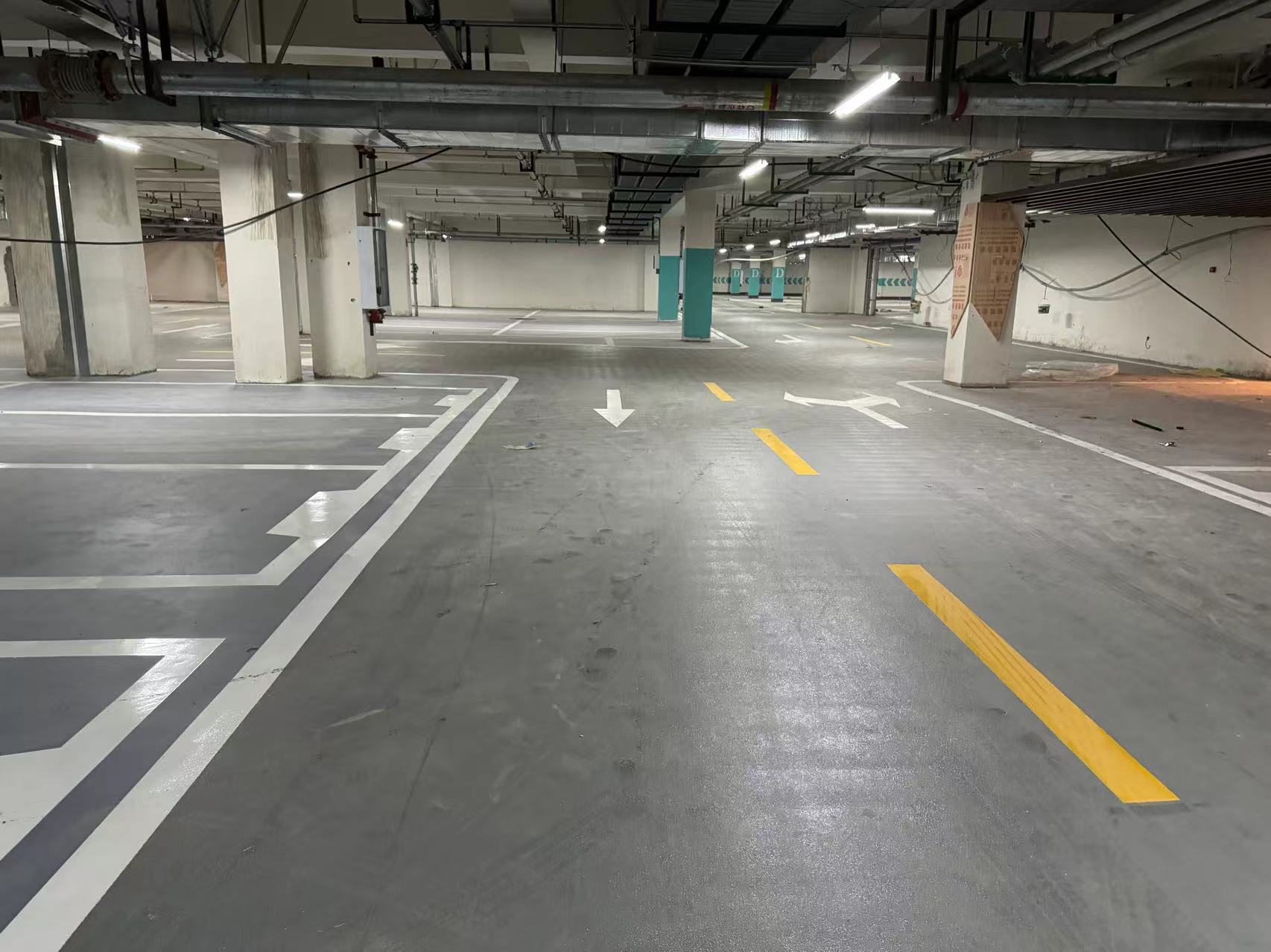 大悦城地下车库:采用油性环氧橘纹地坪,不仅提升了车库的美观度,还特别大的增强了防滑性能,为车主提供了更加安全的停车环境。