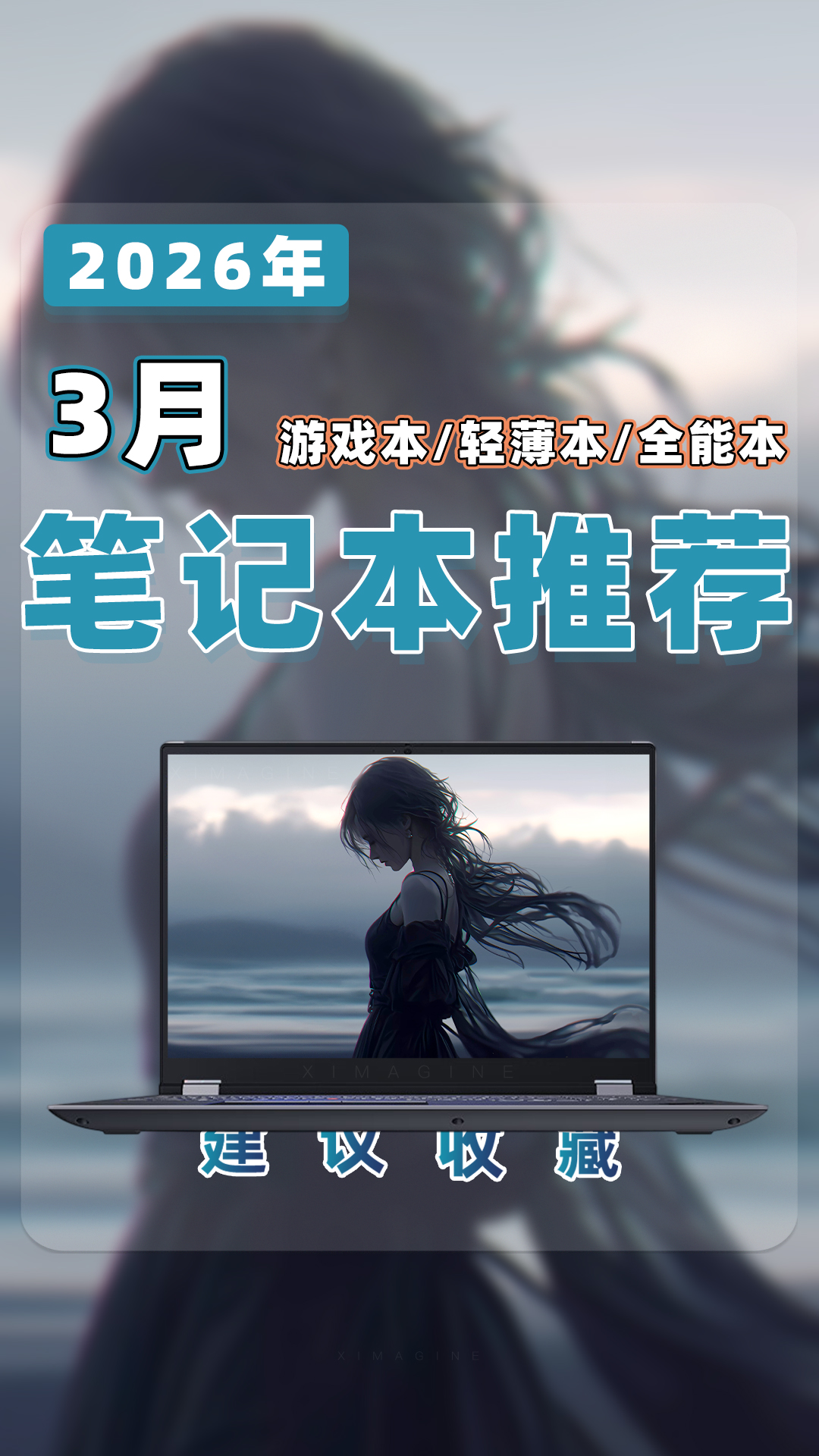 欢迎来到2026年3月笔记本电脑推荐合集!我是本期的游戏本课代表「ximagine」最近很多准大学生或想换笔记本电脑的上班族,看着购物车里那几款游戏本,CPU、显卡、内存参数看得头都大了,结果还是不知道买哪个,怕买贵更怕买错,其实选轻薄本没那么玄乎,一明确需求:科生普通上班族选轻薄本便携续航好,设计视频剪辑或理工科需高性能全能本,游戏玩家选游戏本强在散热和显卡。二看懂核心配置:日常办公CPU选酷睿i5/锐龙R5足够,有高性能需求考虑i9/R9或酷睿Ultra系列,办公用集成显卡即可,玩游戏或专业创作必须配独立显卡,想用得久或应付专业软件内存建议上 32GB,注意部分轻薄本内存无法升级;三关注隐形因素:散热决定性能能否稳定发挥,重量影响便携性经常带出门选1.5kg以下;检查 USB、HDMI、Type-C 接口够不够用;一线品牌售后网点多维修更方便。警惕i9/R9级处理器这种模糊说法,看清具体型号和代数,话不多说,正餐开始!