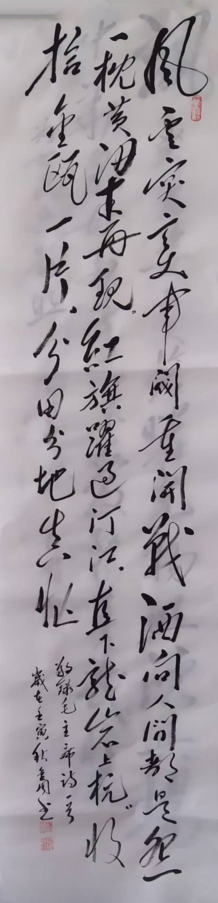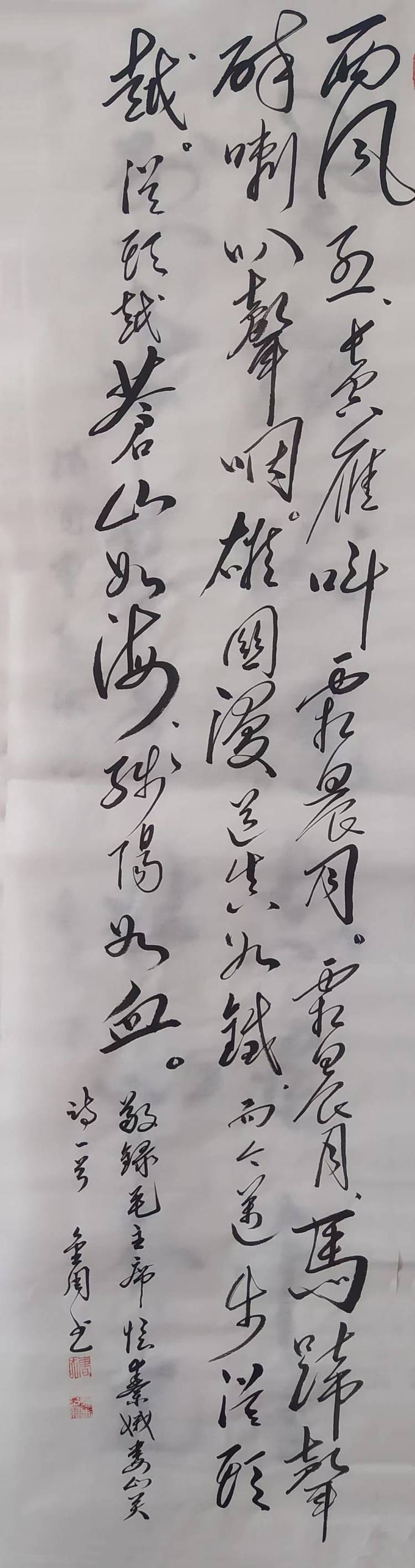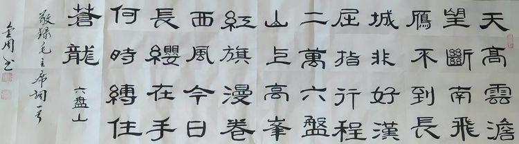 曹金周,男,生于一九五四年三月。中共党员,高中文化,自幼爱好书画,教过书,当过兵。退休后加入河北省毛体书法协会,多次参加全国各级书展,并获奖。晚年又临习了《曹全碑》,爱上了隶书。