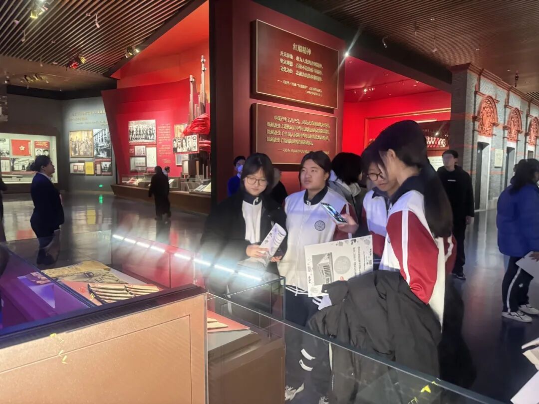 拿着研学手册,同学们对照展厅实景 “寻宝”:看到 “建立中国共产党” 展区的文物,一边用西语标注展厅位置,一边把讲解里的历史背景记在笔记里;走到 “社会主义建设” 板块,围着展柜里的老物件,用双语讨论那段探索的岁月 —— 原本的 “参观”,变成了带着任务的 “沉浸式学习”。