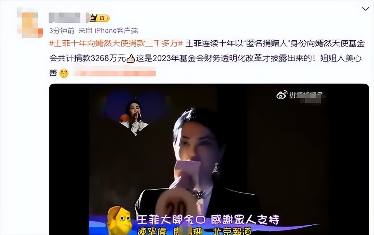 原来,王菲,作为基金会的联合发起人,自从2013年和李亚鹏分开之后,整整十年,一直都在用“匿名”的方式给嫣然天使基金会捐款。