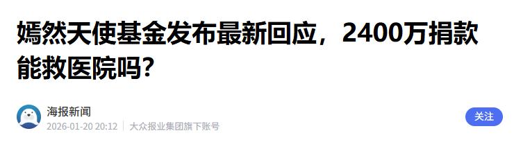 海报新闻 2026-01-20——嫣然天使基金发布最新回应,2400万捐款能救医院吗?