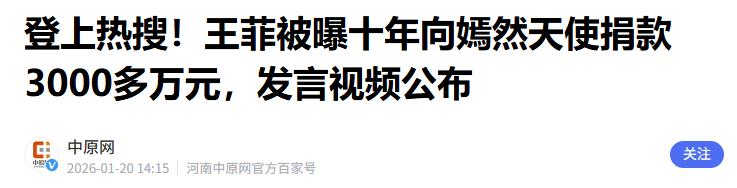 中原网 2026-01-20——登上热搜!王菲被曝十年向嫣然天使捐款3000多万元,发言视频公布