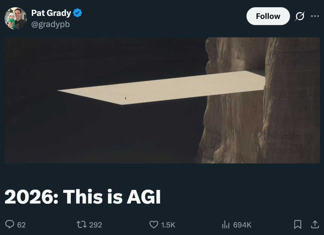 🌟 重磅速递1. 红杉合伙人断言AGI已至,长周期智能体成关键标志红杉资本合伙人Pat Grady与Sonya Huang近期联合发文,提出了一个震动业界的观点:AGI(通用人工智能)在2026年已经到来。他们认为,判断AGI的核心标志不再是抽象的技术指标,而是长周期智能体(Long-horizon Agent)是否具备自主推理、规划并迭代解决复杂问题的能力。这类智能体正从单纯的“对话者”演变为能够执行多步骤任务的“行动者”。