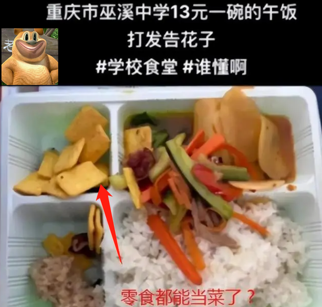 高校食堂本来就并不是高端市场,价格上也不会太高,重庆一中学午饭一份13元,大概是中等水平水准,按理说收费标准不太高,但反被该学校学生们上传至在网上调侃。