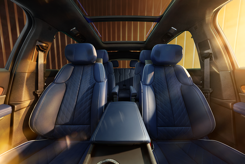凯威德深度洞察中国市场高端圈层出行需求,专为中国用户升级二排乘坐体验。行政级电动座椅依据国内用户乘坐习惯全面优化,兼顾包裹感与支撑性,拥有16向调节功能、配备6向航空头枕、10点分区指感按摩与智能加热通风功能,让舒适体验全天候在线。同级最大的二排进出开口,配合空气悬架的智能上下车模式,让每一次出入都更从容优雅,尽显旗舰礼遇。