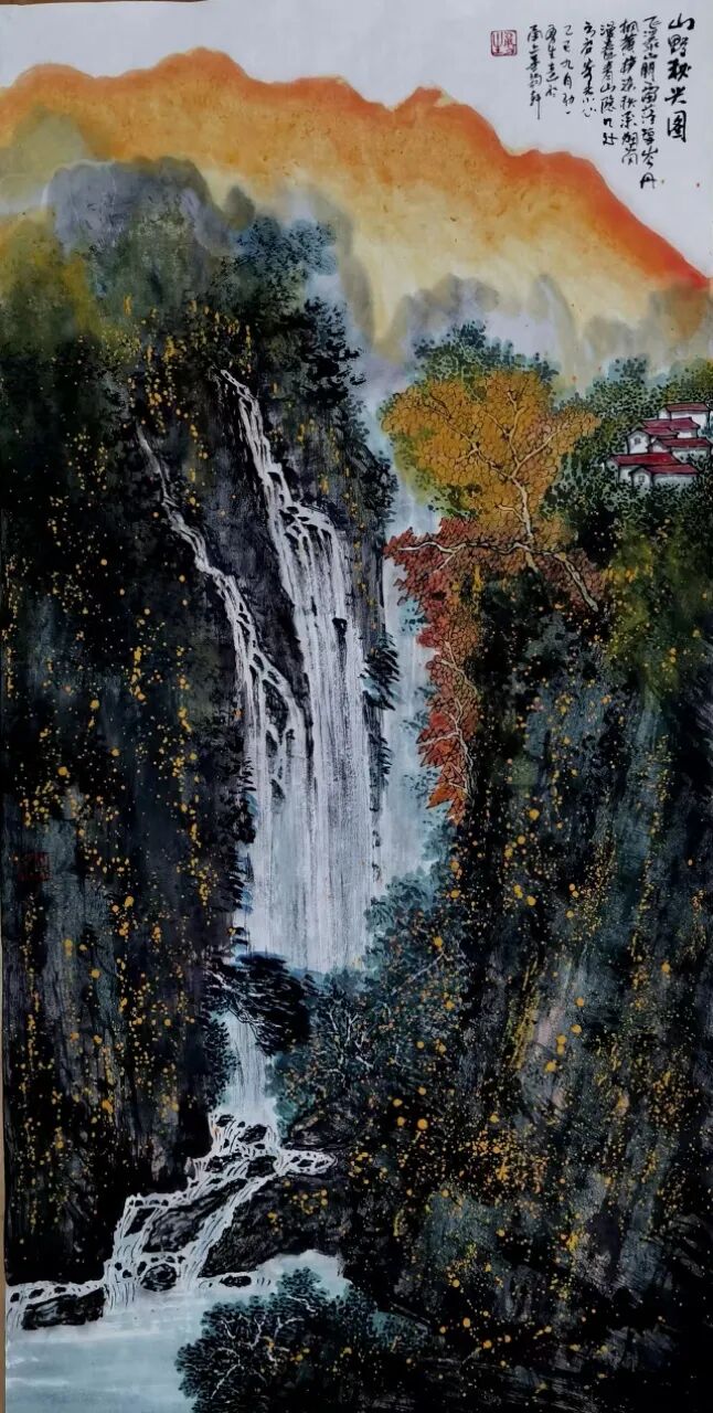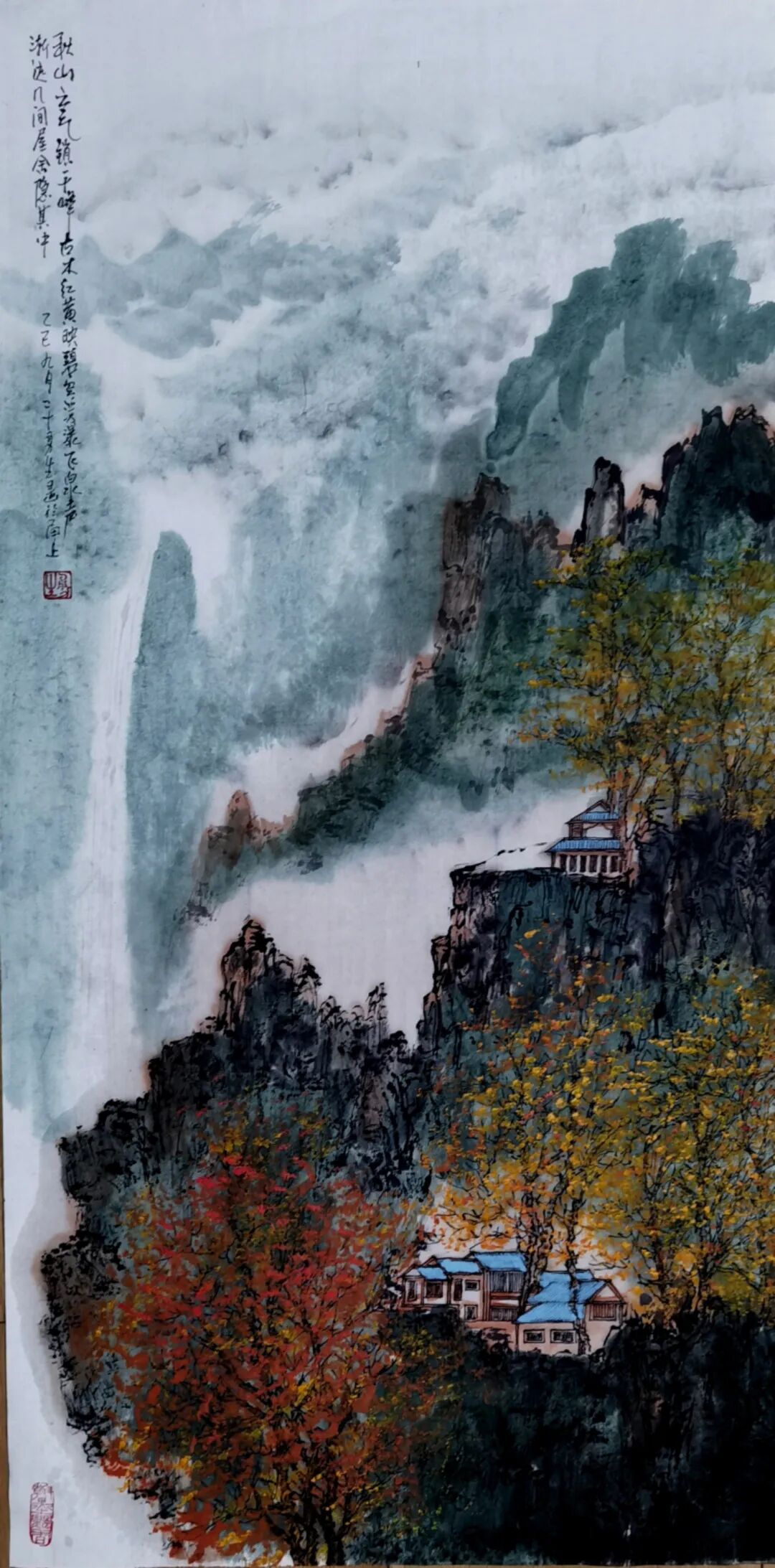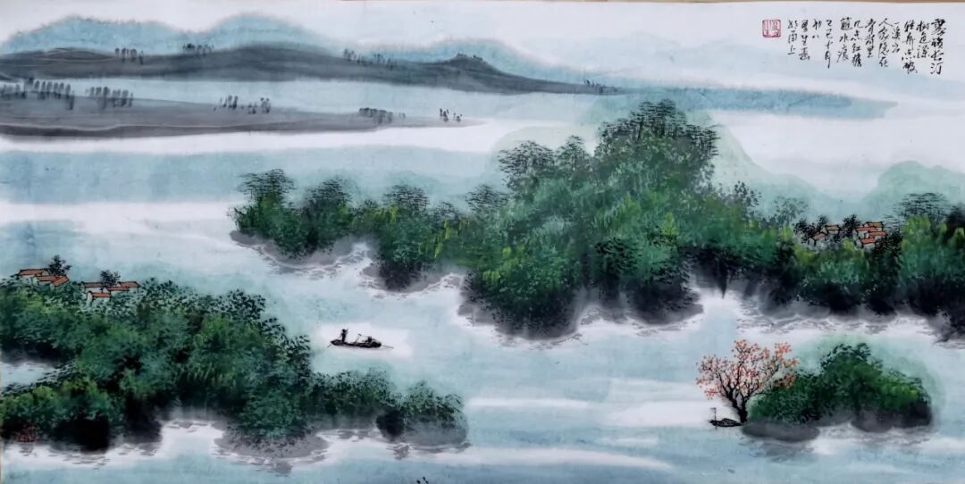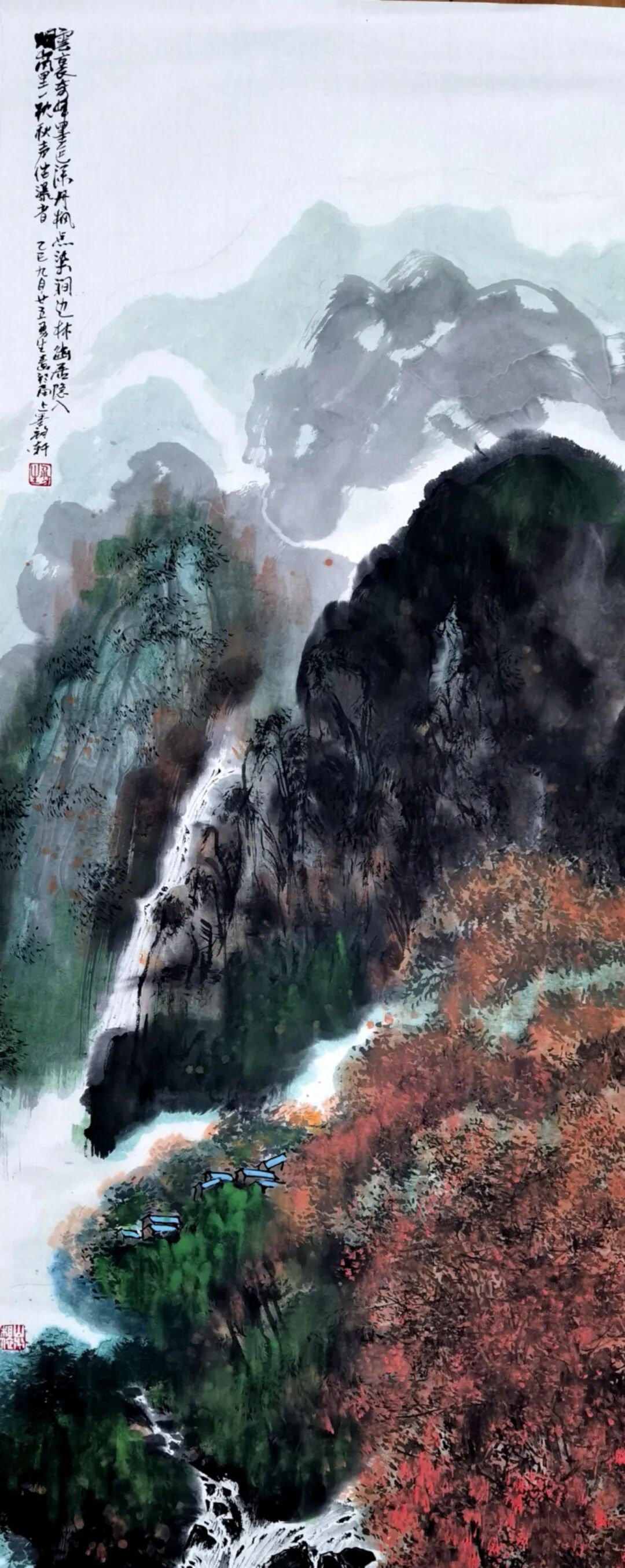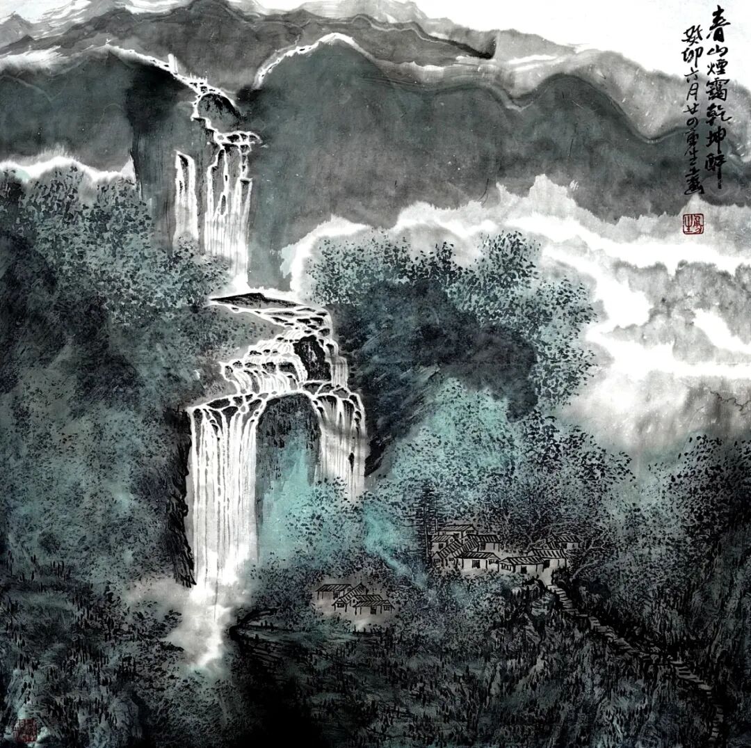 蒋勇生在色彩运用上打破了传统山水画以水墨为主的单一色调,通过色彩的对比与调和,创造出更具现代感的视觉效果。他以青绿色为主调,通过色彩的渐变与叠加,表现出山水的四季变化。这种色彩处理方式既保留了传统青绿山水的典雅气质,又通过色彩的创新运用,使画面更具时代感。