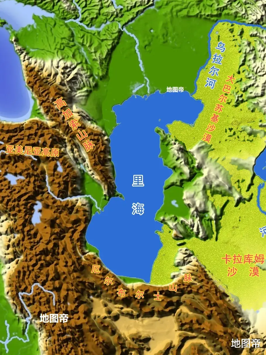 乌兹面积不小,但大部分地方覆盖广袤的克孜勒库姆沙漠,沙漠西端是咸海。
