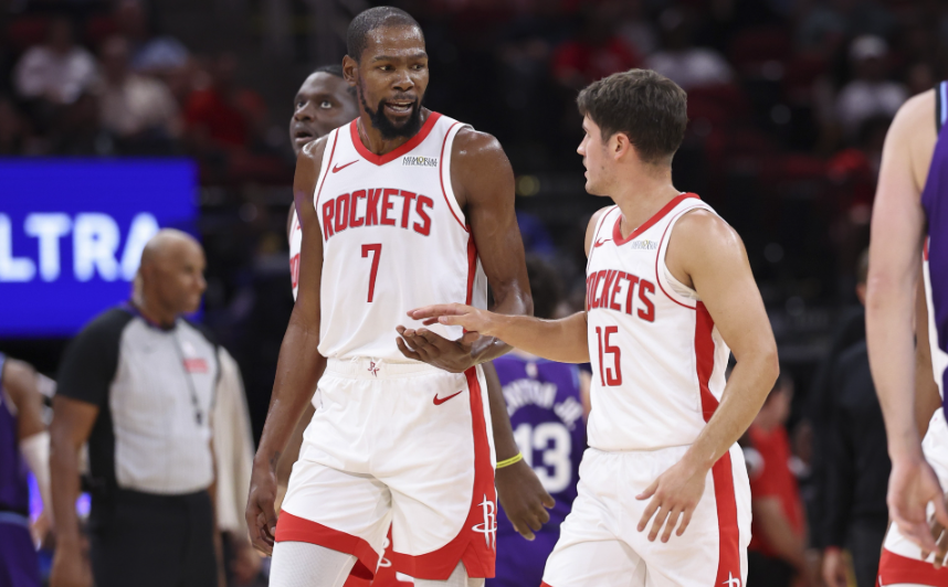 杜兰特能吸引夹击,杜兰特休息阶段,申京为轴,吸引夹击带动其他球员,终结阶段乌度卡摆出小贾+杜兰特+奥科吉+阿门+电风扇的五锋阵容,无限换防阿门能频频打攻守转换,电风扇和小贾能频频命中三分,火箭攻防平衡,将分差拉开到19分。