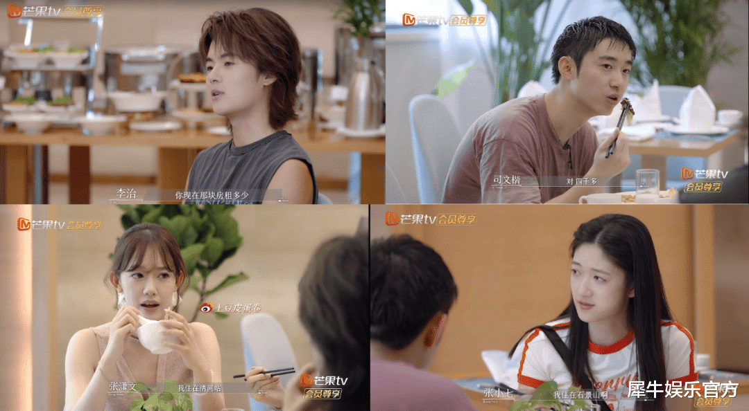 还是官方吐槽最为致命。《逃离朝九晚五的恋爱》首期正片,犀牛君见识到了一场史上最“兵荒马乱”的恋综初见面,一帮刚被没收手机的北漂人还没洗去一身班味就被拉来酒店里录恋综了,有人开口一聊全都是“活儿”,有人拒绝社交只是“一味干饭”,有人哆哆嗦嗦紧张到中国话都不会说了,有人干脆闭目养神假装别人看不见他…… 而根本没话找话的i人李治一语点题,实锤“甜宠恋综”被爆改成了“牛马聚会”。