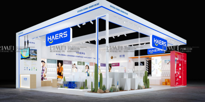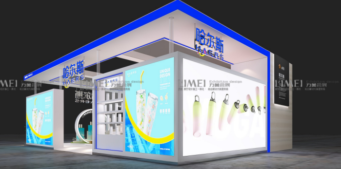 哈尔斯作为国内杯壶行业的龙头企业,在广交会中打造的品牌展台,核心需求是通过展台呈现品牌的国际化形象,同时适配全球不同区域采购商的观展需求,实现新品展示与外贸洽谈的高效结合,最终提升海外订单转化。