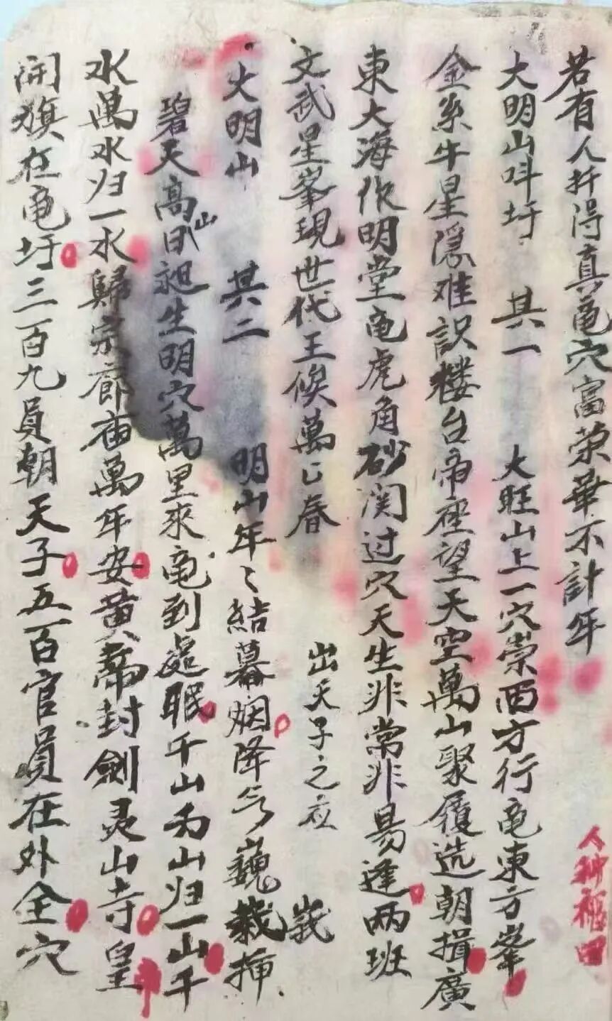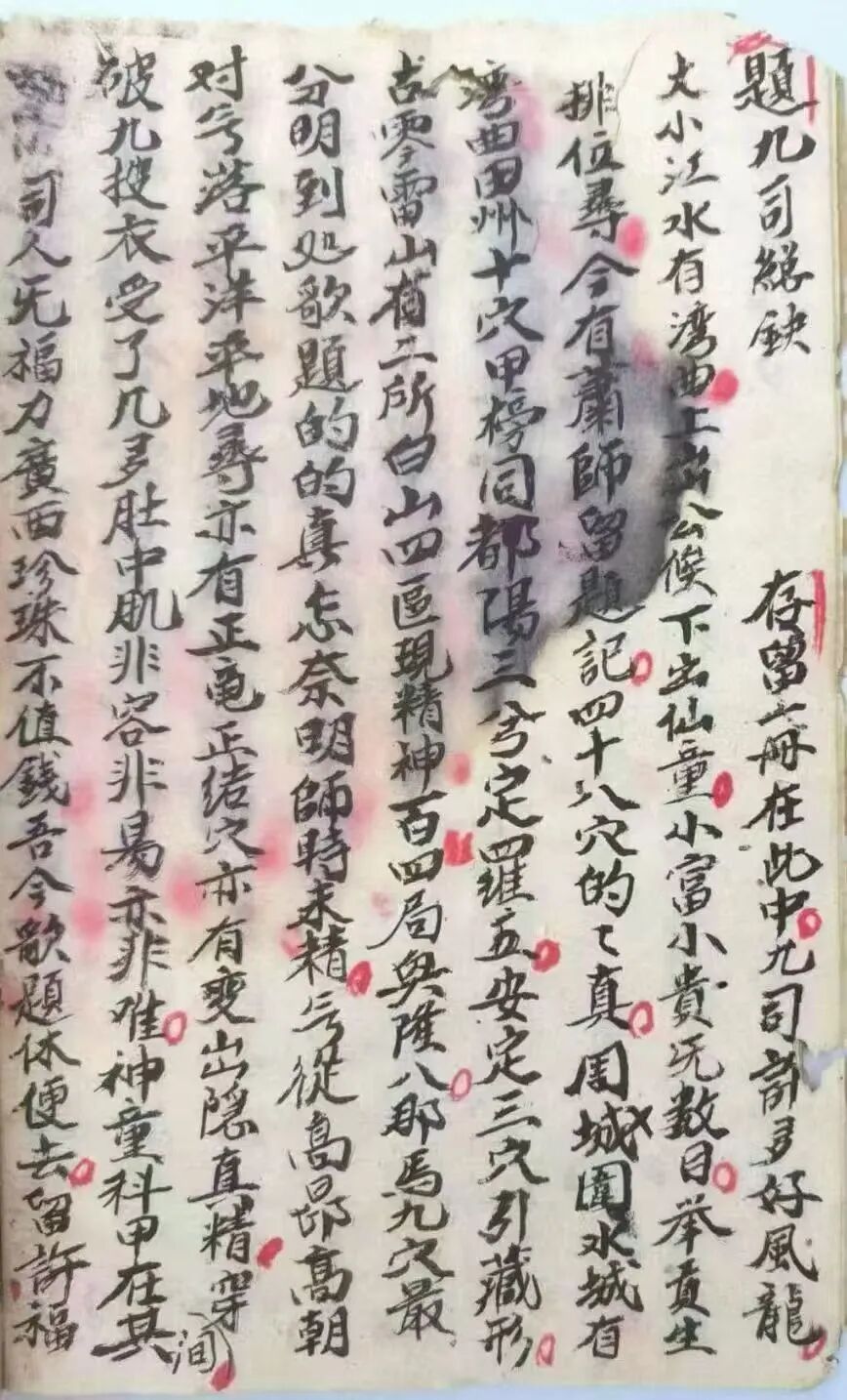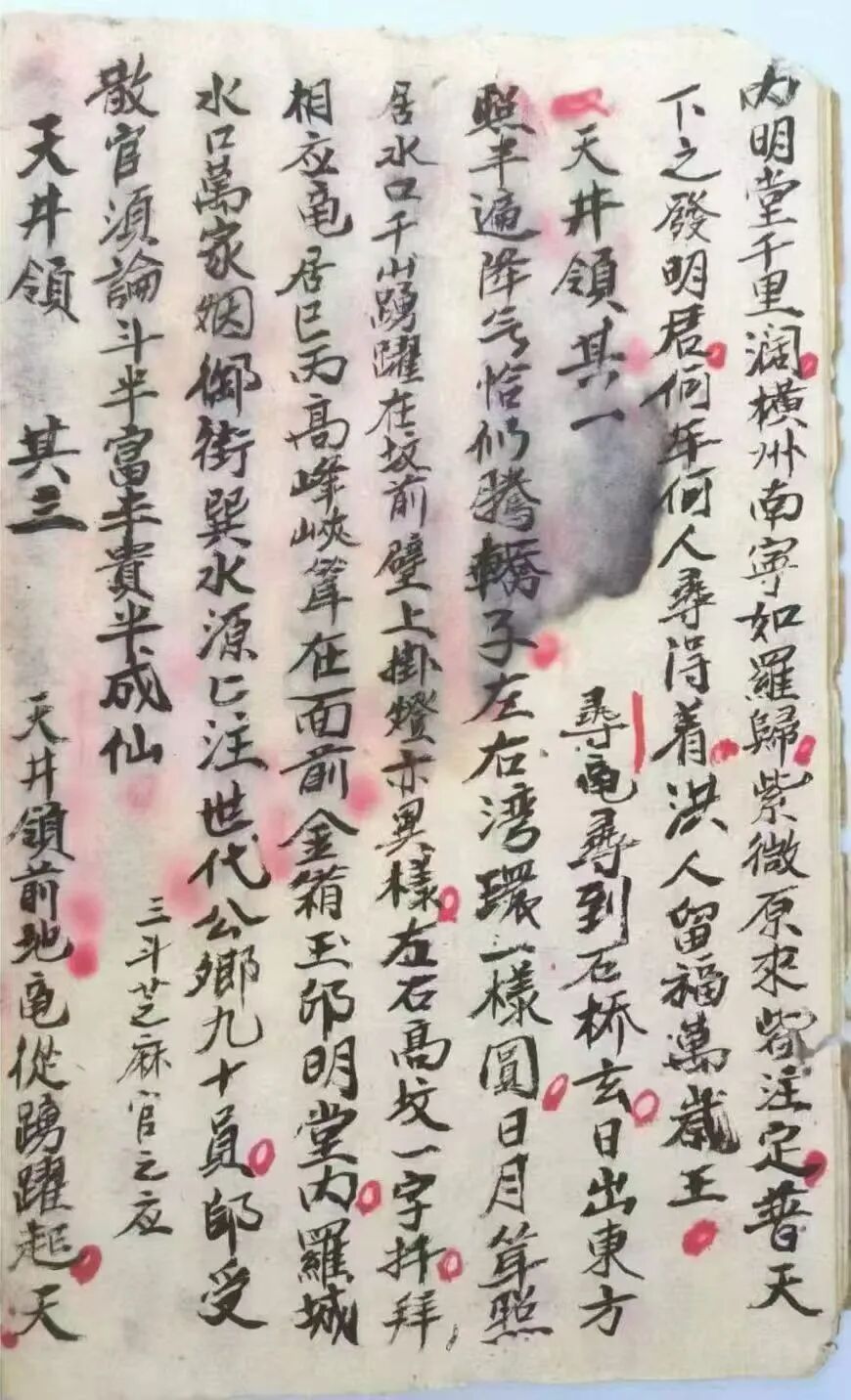 作为106页完整传世的堪舆秘本,该书无后世篡改增删,完整保留了韦士连实地堪舆的原始记录,语言兼顾诗赋韵律与实操口诀,既含“绿龟十所位居中”的精准概括,又有具体穴位的形态描述。它不仅是武缘县风水文化的具象载体,更填补了广西地域堪舆留题文献的空白,为解读武鸣山川灵气、地域文脉提供了珍贵支撑,是堪舆界与古籍藏界的传世瑰宝。