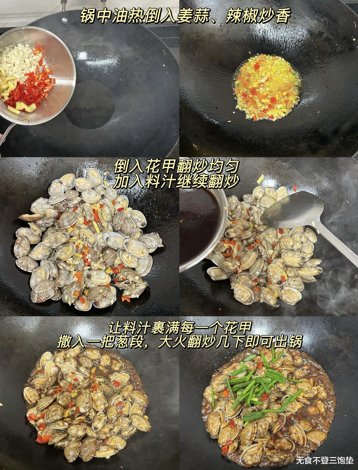 最后撒上葱花,翻炒几下即可出锅。全程动作要快,避免花甲在锅里停留太久出水变老。