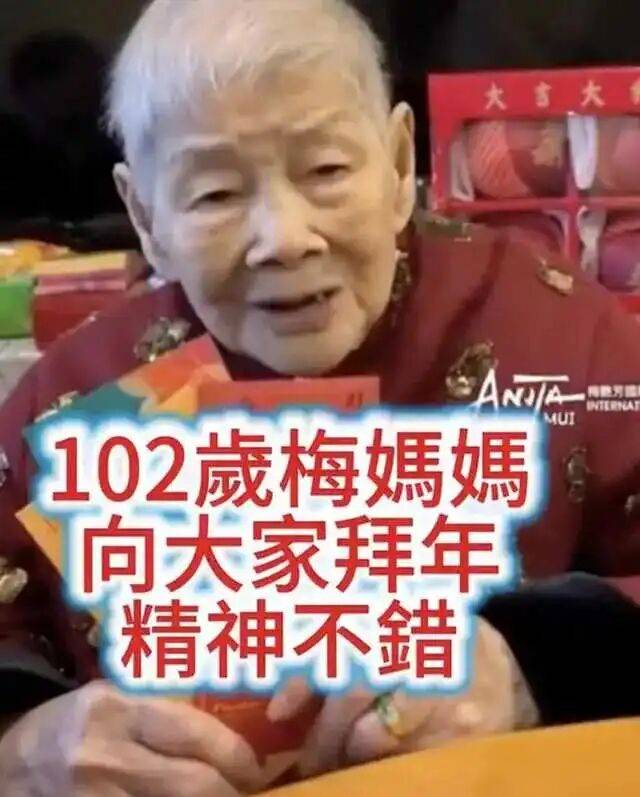 如今,覃美金已经步入了102岁的高龄。与往日的锋芒毕露不同,岁月赋予她的是更多的平和与淡定,而这份平静的背后,藏着的是一段跨越了十多年,充满争议和唏嘘的过往。从梅艳芳歌迷会新近发布的贺岁视频来看,这位百岁老人精神焕发,简直让人难以置信。视频中的覃美金,剪了清爽利落的花白短发,褪去了年轻时的臃肿,整个人看起来神采奕奕。为了配合新春的喜庆氛围,她特意穿上了一件红色的传统棉袄,衬得她的气色更加红润。手里拿着几个印有吉祥图案的马年利是封,眉眼间带着淡淡的笑意,整个人显得格外慈祥。
