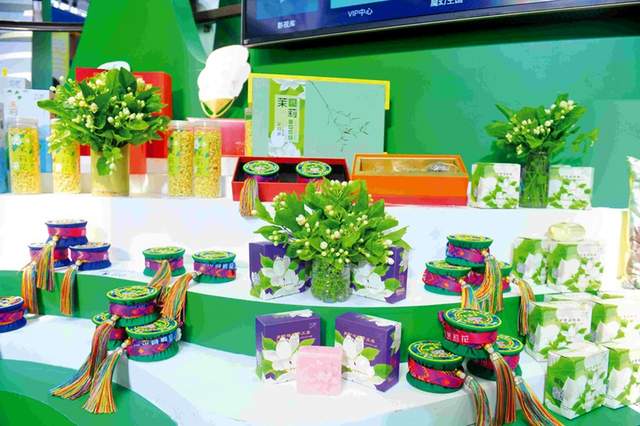 在展览会上的茉莉花系列特色产品。 宾阳 摄