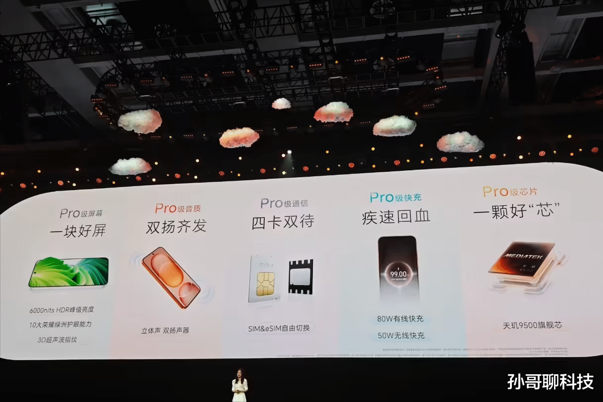 核心搭载天玑9500处理器,性能也是安卓阵营最新旗舰水准。其他外围规格包括玻纤后盖、铝合金中框、立体声双扬声器、红外遥控、多功能NFC、IP68/69级防尘防水、3D超声波指纹、双eSIM+双SIM四卡双待,外围规格堆料也非常猛。