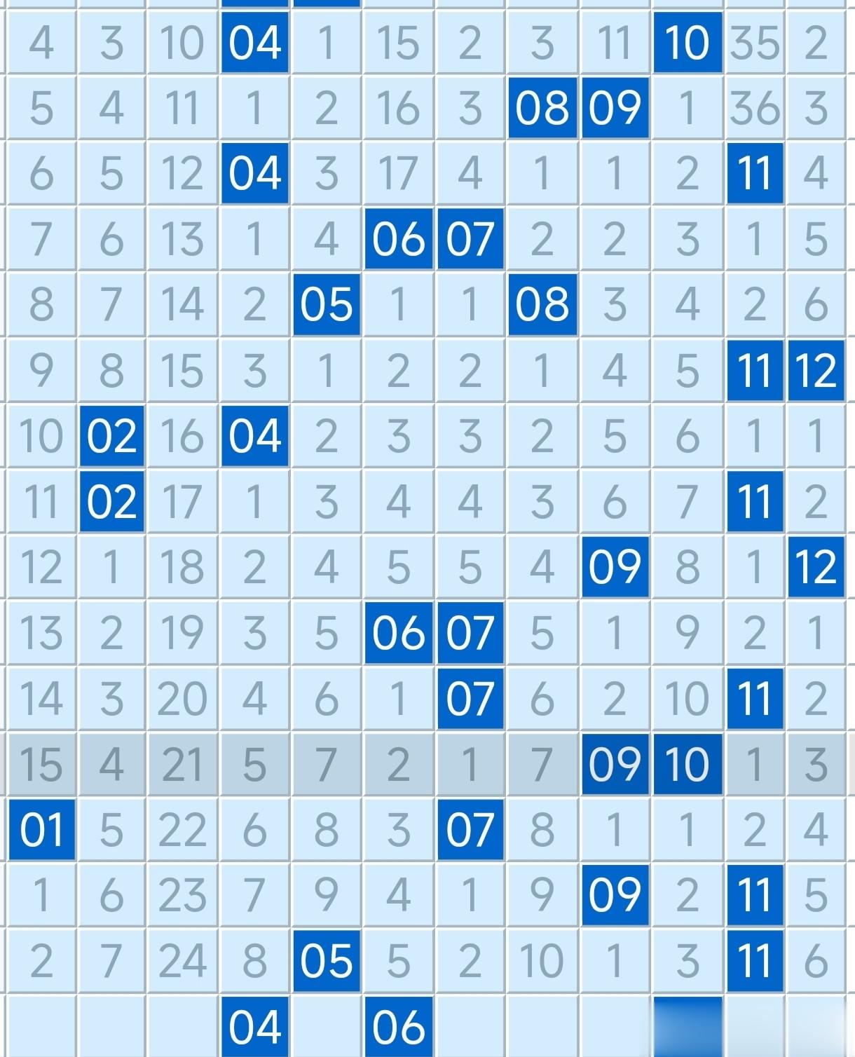 后区号码走势本期后区开奖号码没有迎来双大号码连开,却迎来了双奇数号码连开,其中奖号11为重号开出。