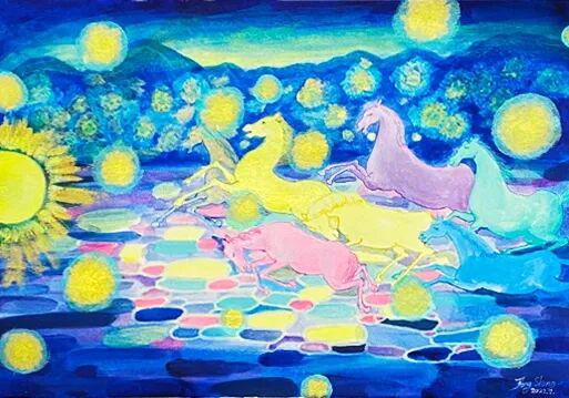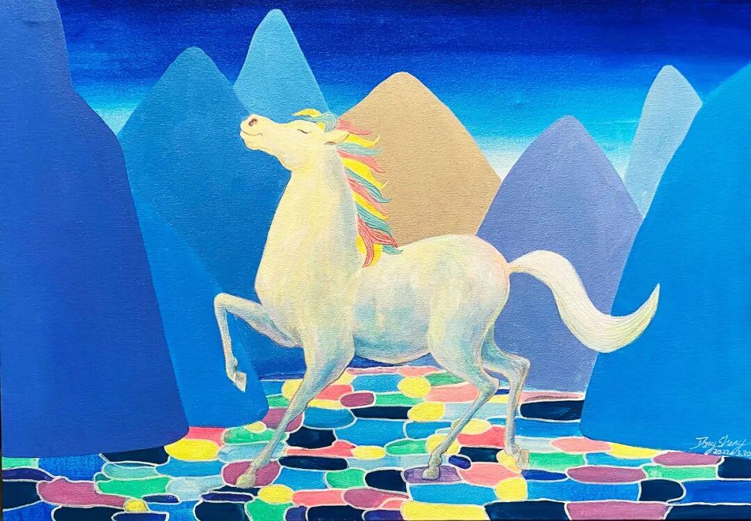 朱东升的画马,是梦,是诗,是哲思。在那些奇幻的色彩和变形的形象背后,是一个艺术家对文化根脉的坚守,对精神自由的追求。他的马,既是中国的,也是世界的;既是传统的,也是当代的。这种"双重性",或许正是其艺术魅力的核心所在。