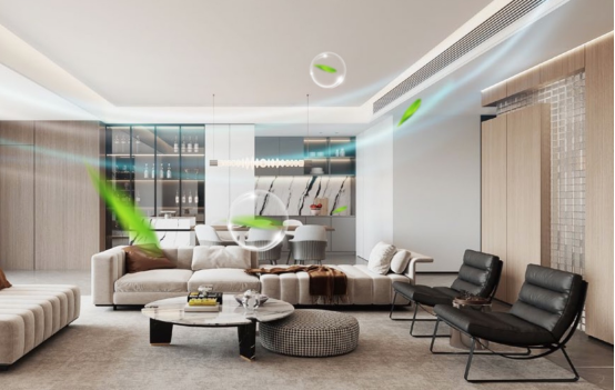 大空间的空气焕新总让人头疼,开窗换气灰尘多,普通新风又力不从心。海信中央空调新风室内机的出现,彻底解决了这一难题。120m³/h 的强新风量,相当于每小时为 60㎡客厅换 2 次新鲜空气,配合 990m³/h 的大送风量,能快速将室外鲜氧送达空间每个角落。