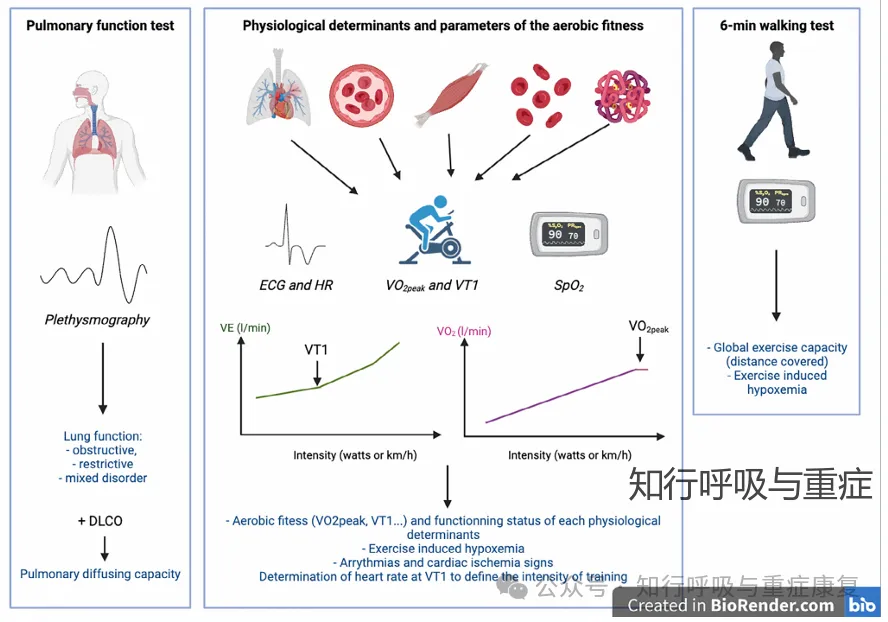 若无法开展CPET,可采用6分钟步行试验评估患者的整体运动能力/耐量,以及在轻至中等强度运动过程中发生氧饱和度下降的风险。