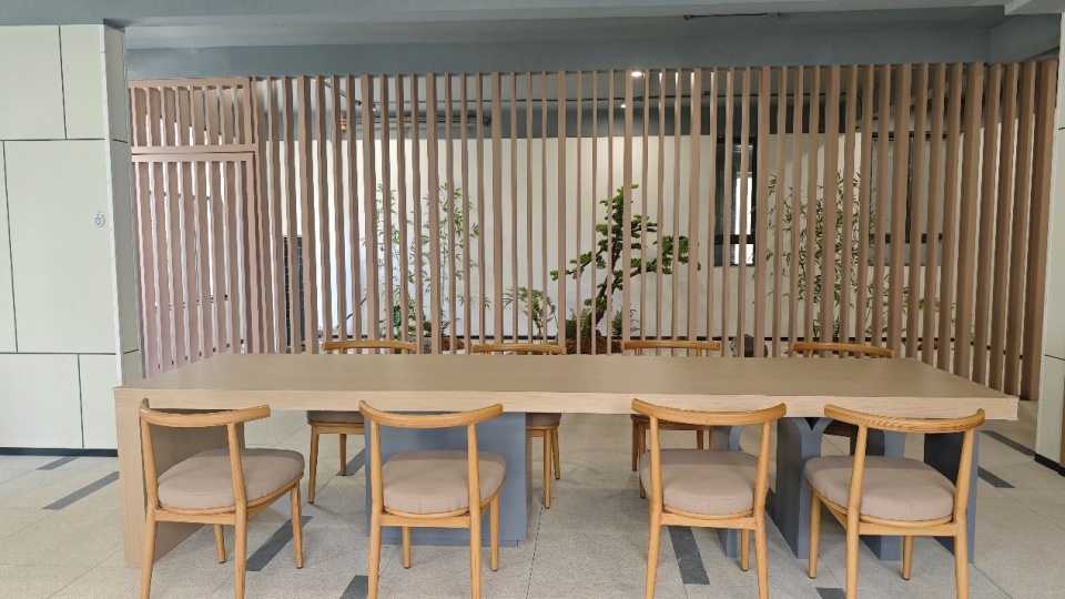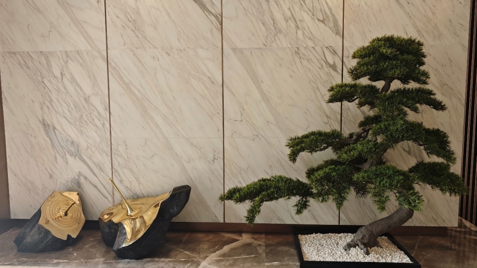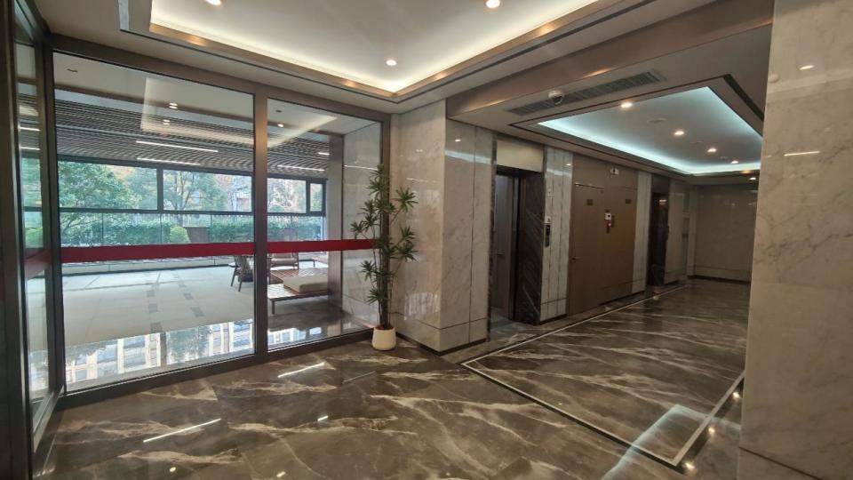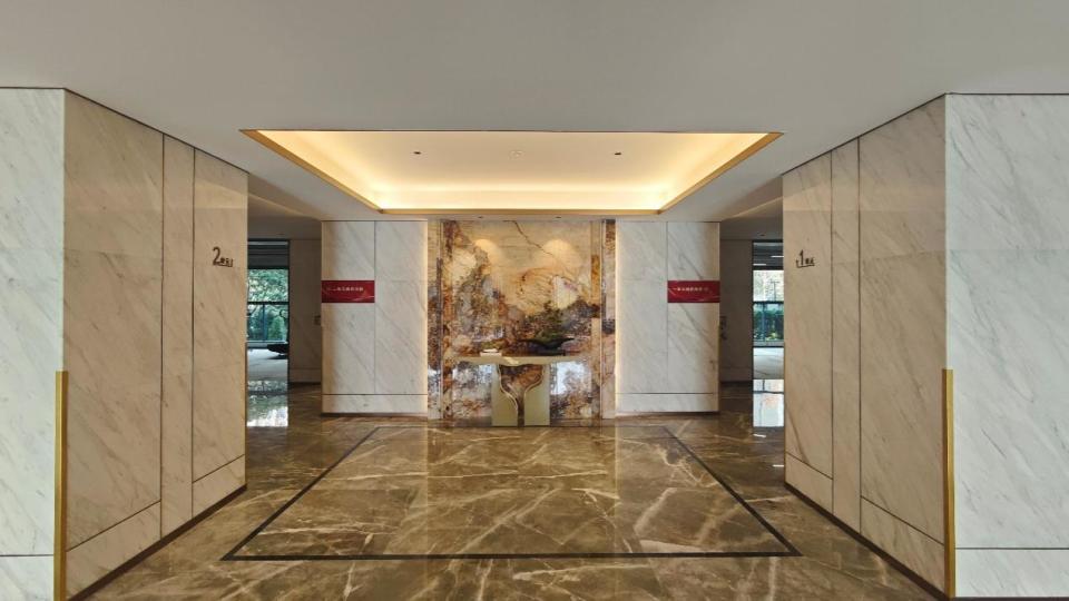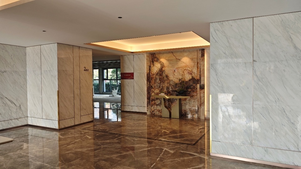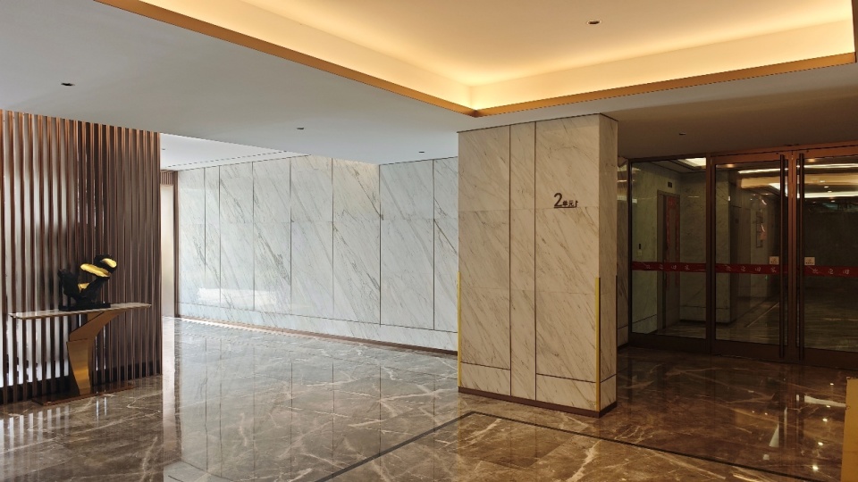 公区大范围运用石材、金属板/线条就不说了,个人很喜欢这种暖色调,比较温馨,也有很有氛围感。