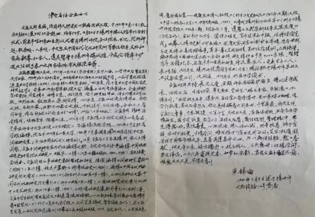 伦后于1979年去山东大学,1981年奉调来扬州师范学院中文系词曲研究室(今归中国文化研究所)。