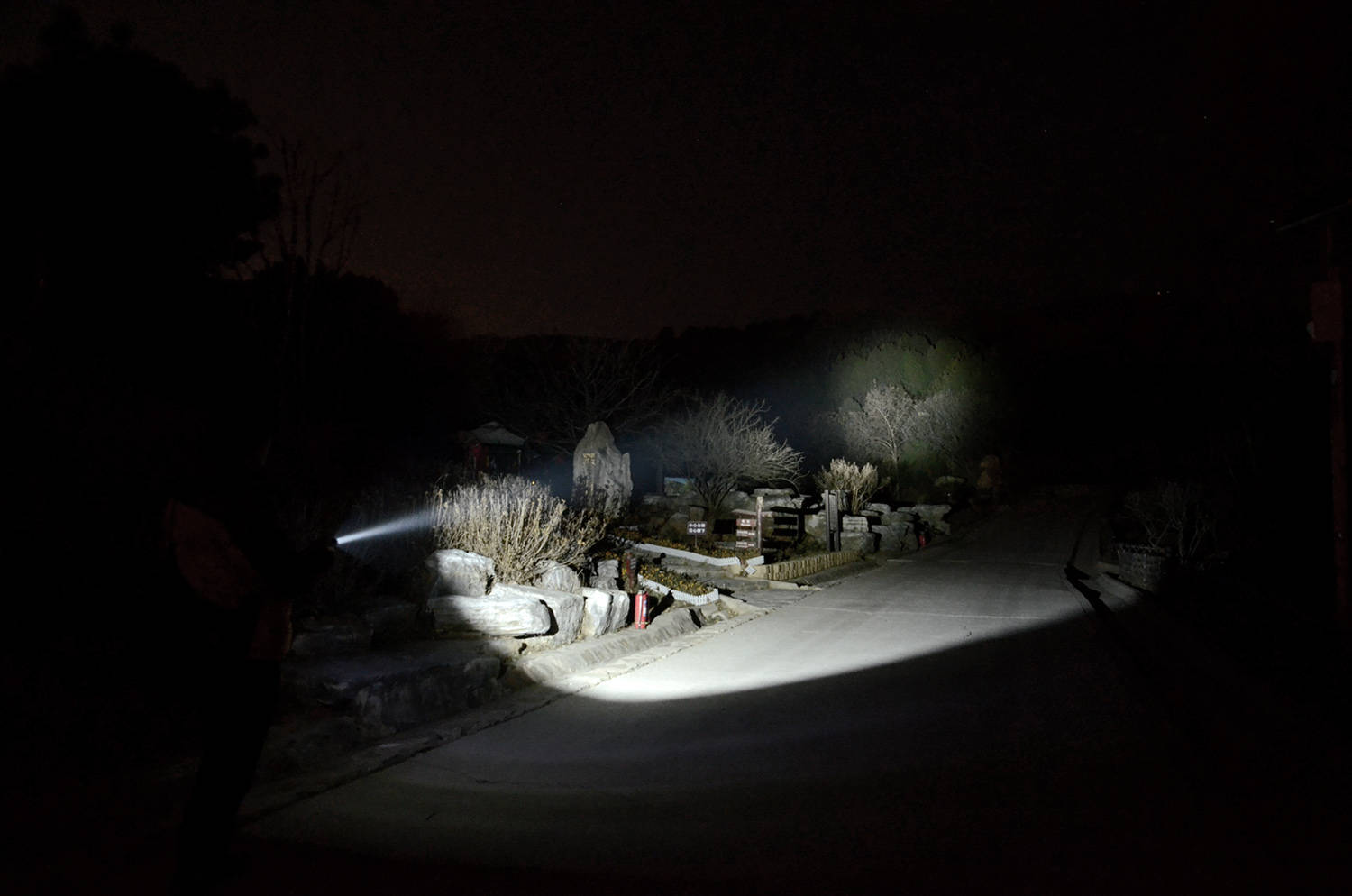 照明距离远,也有很好的光线铺路表现,稍压低灯头,就能形成比较开阔的照明视野,面前的大面积都被照亮,前方的整体都被手电的光线铺满,助你看得更加开阔。