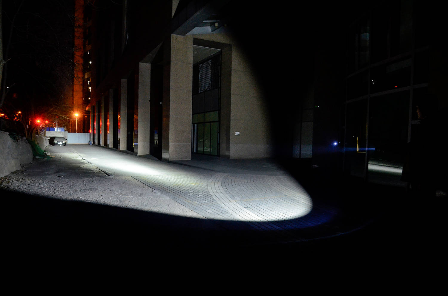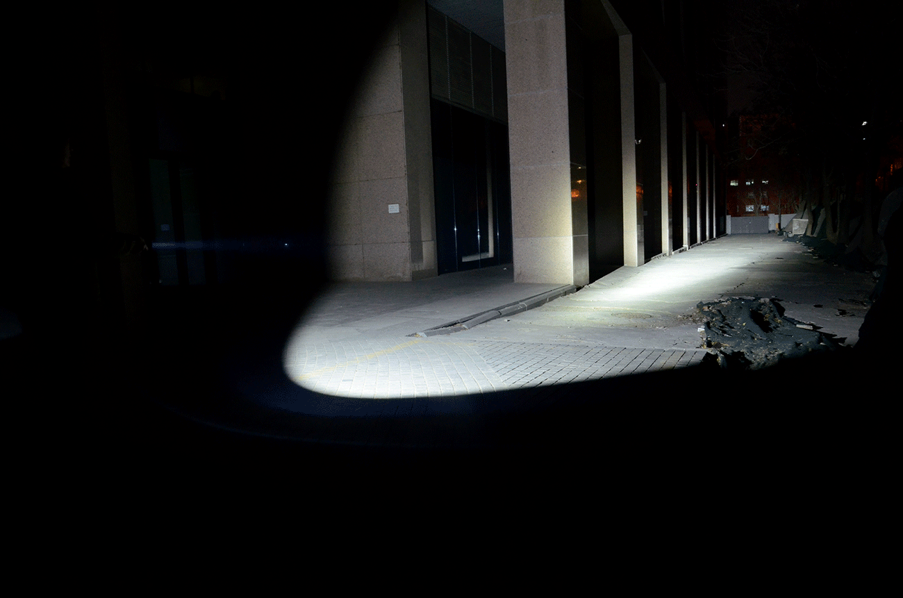 在城市环境使用,这种聚光照明有着不错的亮度表现,光线整体呈圆锥形向前发散,能够形成清晰、明亮、明显的光斑,中间聚光效果更亮、达到的距离更远,视觉通透效果好。