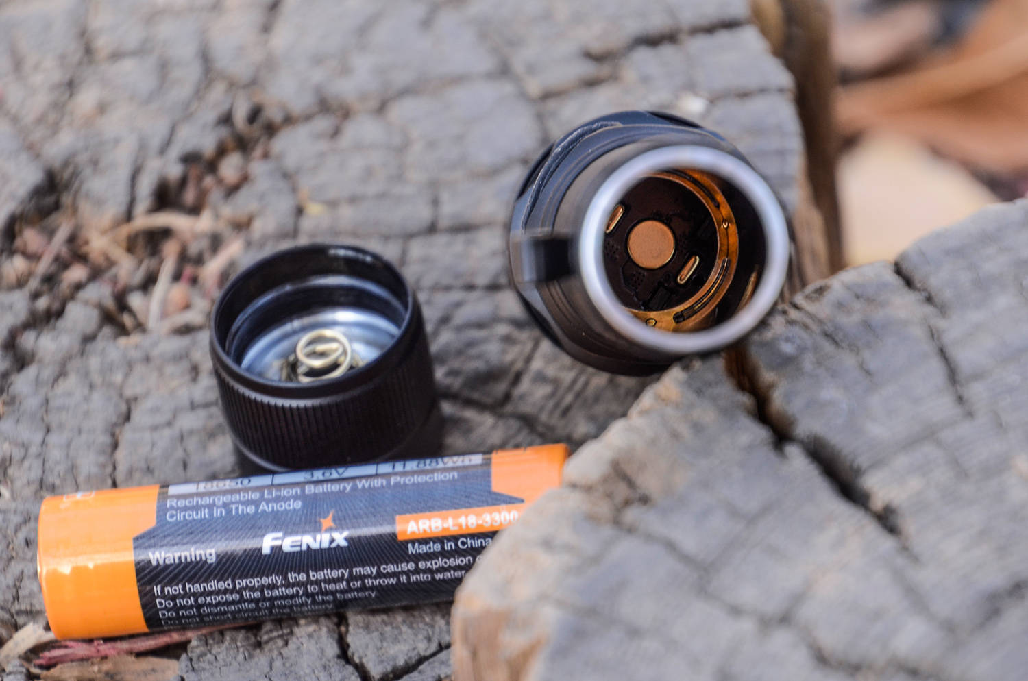 拧下尾盖,就能看到粗大的镀金弹簧,可以减小电阻、减小压降,以保障大功率、高亮度的输出能力,官方标配一颗3300mAh的电池,极亮续航能力接近2小时。